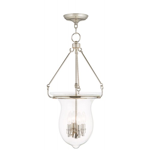 Clean, simple, and classic, you can't go wrong with our Canterbuty chain hung bell jar lantern in polished nickel.