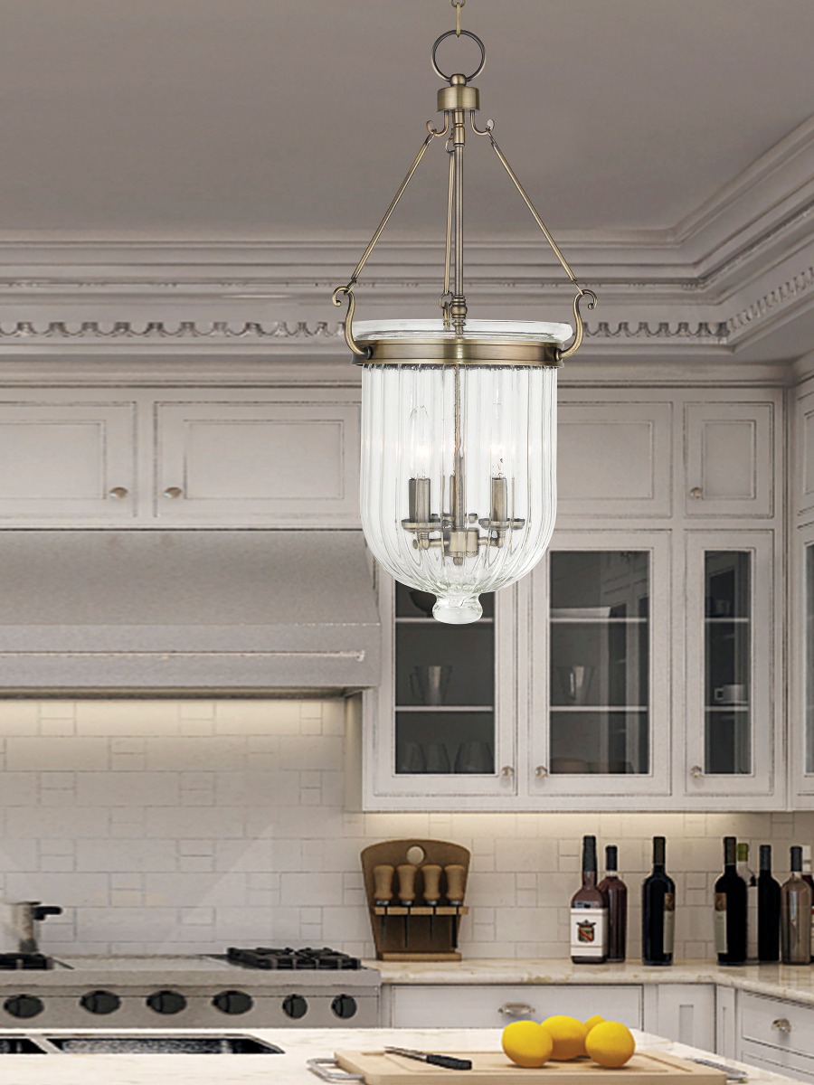 Light up that dark corner of your home or hang this melon jar pendant in multiples to achieve a warm, welcoming look. The ribbing on the glass portion of this pendant give it the classic melon jar shape. The antique brass finish also add to this pendants endearing charm.