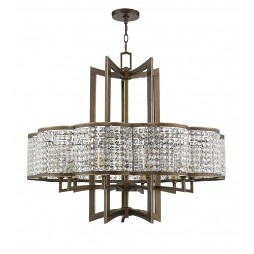 Crystal strands strung in a decrotive shade design define this classically glamorous chandelier in which the bulbs are completely shaded, allowing the light to shine through the K9 crystal for a warm, intimate lighting feel.
