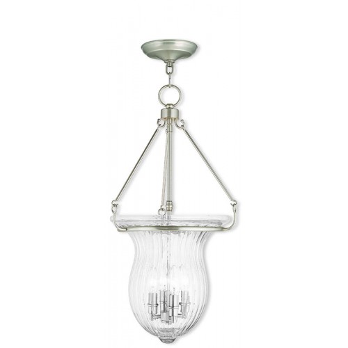 Clean, simple, and classic, you can't go wrong with our Canterbuty chain hung bell jar lantern in brushed nickel.