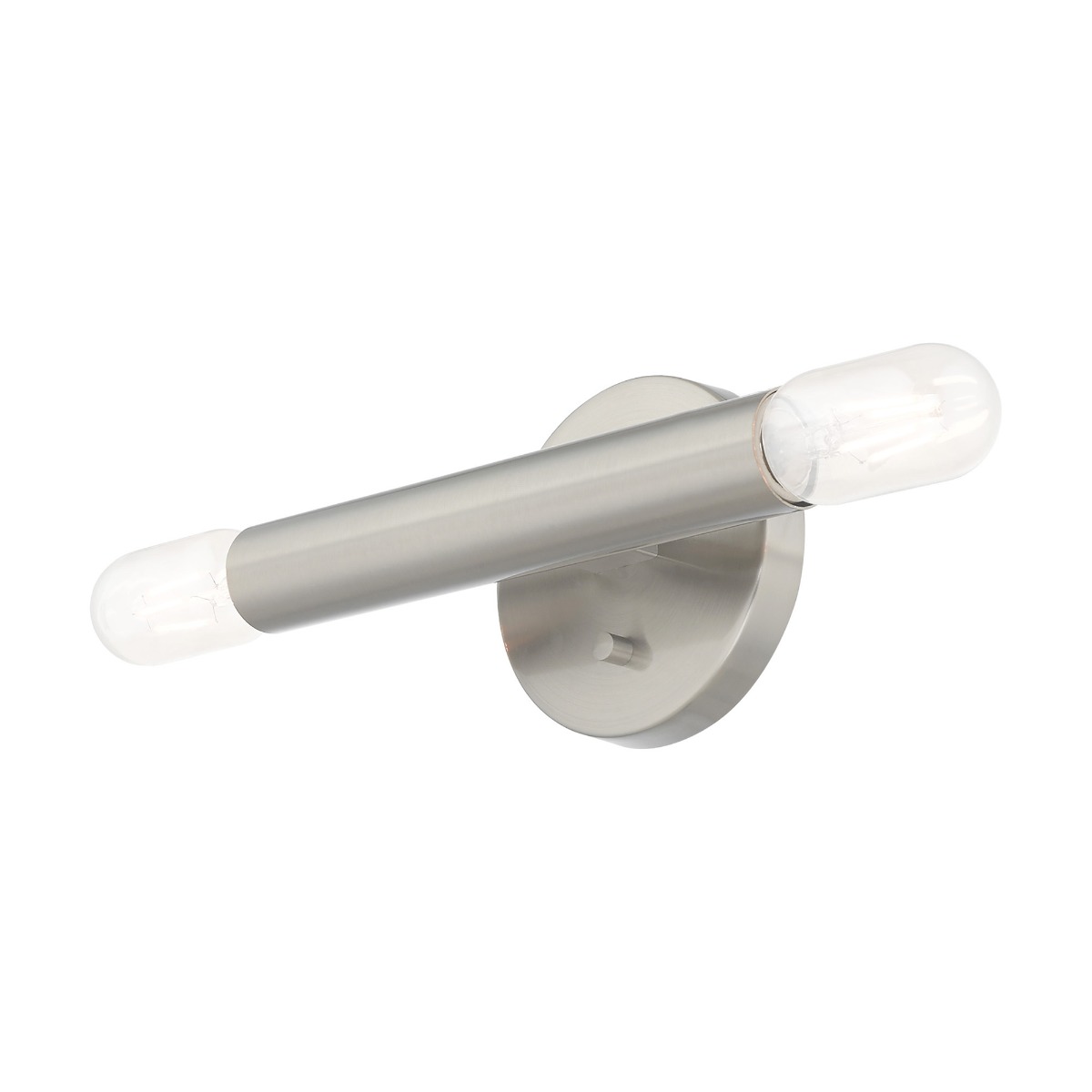 Exposed bulb sockets are fixed over brushed nickel to create an eclectic look perfect for mid century modern or transitional spaces wanting an industrial touch.