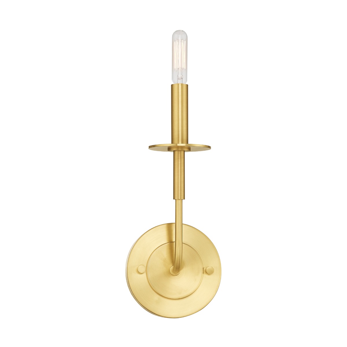 This minimalist wall sconce has transitional and traditional appeal. The satin brass finish and simple style take this piece from classic to modern and industrial spaces.