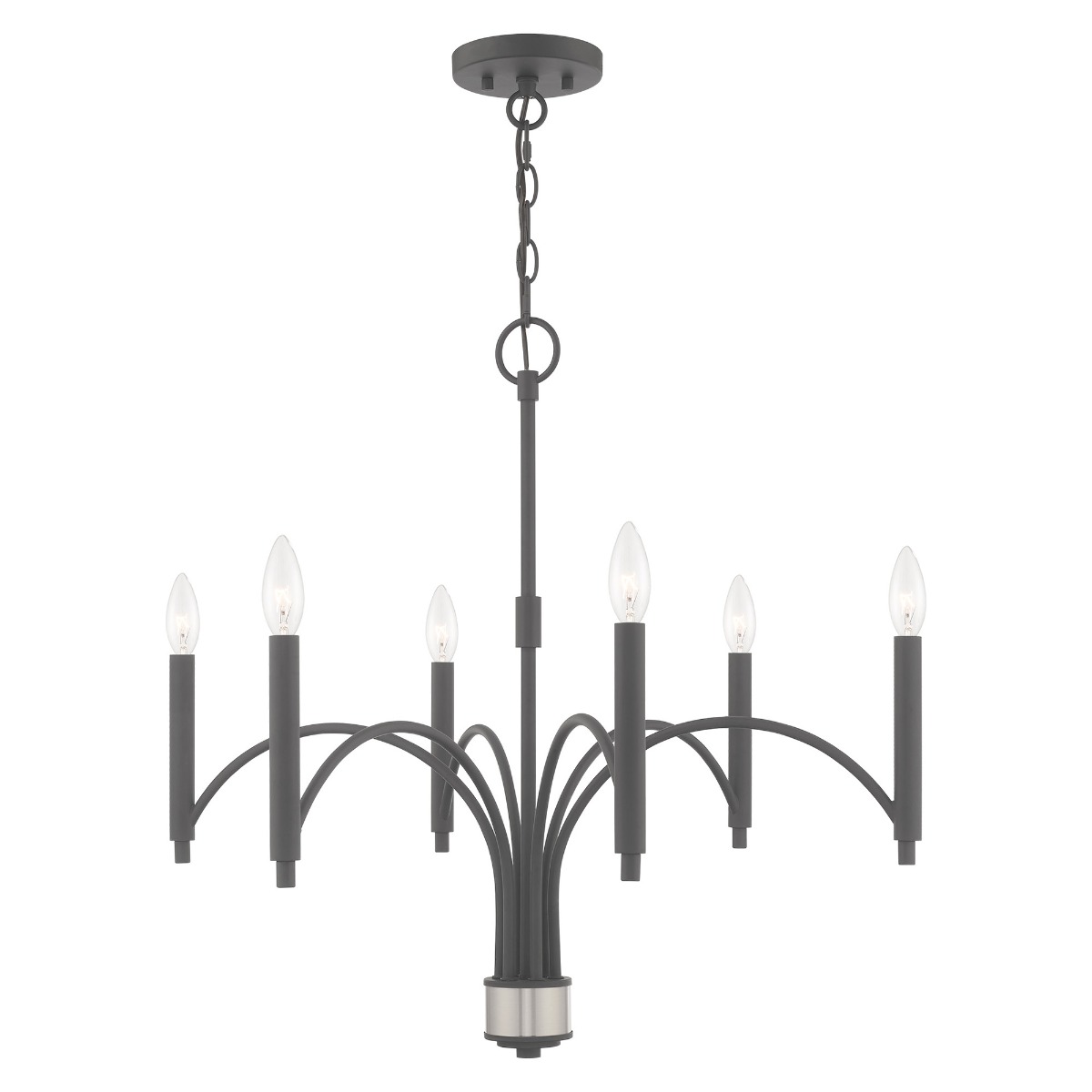 Less is more with this sleek minimalist chandelier from the Wisteria collection. The thin bar arms and simple cylindrical candle sleeves are perfect for adding mid century modern pizzazz to understated decor.
