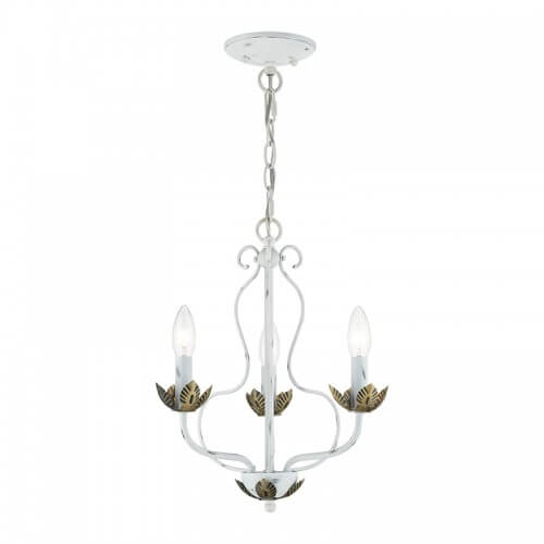 The three-light Katarina floral chandelier showcases a graceful look. The antique white finish combined with antique brass finish accents completes this timeless and casual design.