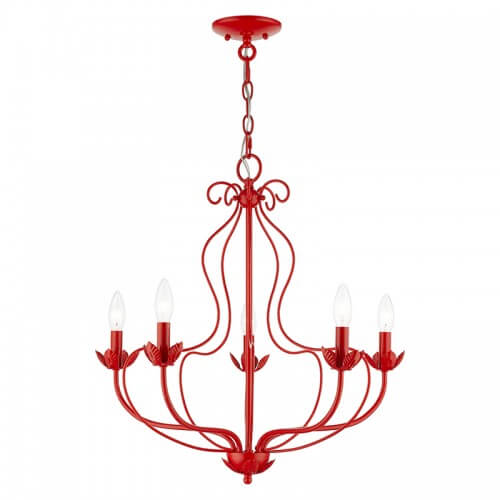 The five-light Katarina floral chandelier showcases a graceful look. The shiny red finish completes this timeless and casual design.