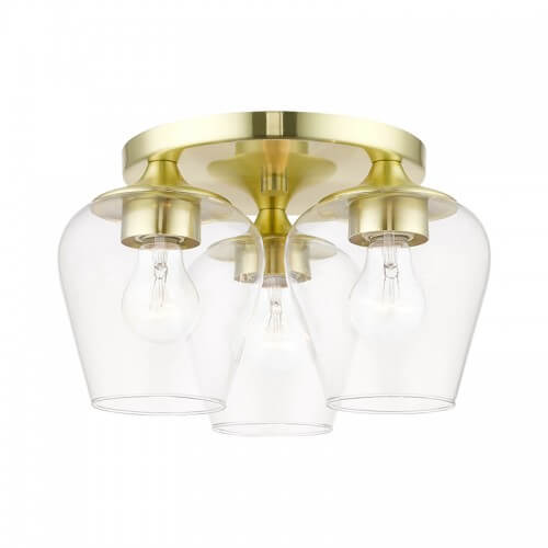 This three light flush mount from the willow collection has understated elegance. It features minimal details, clear curved glass with a satin brass finish and can fit into any decor.