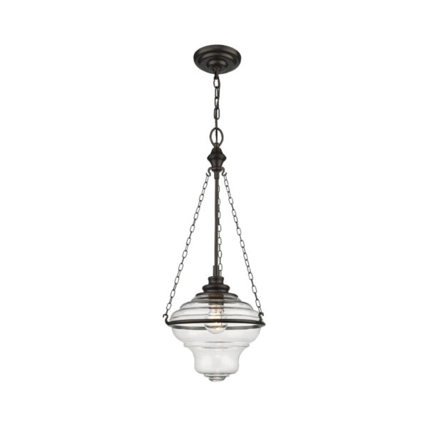 1-light pendant Dark brown metal structure and glass shade.Uses 1 E26 60 watt bulb (not included).