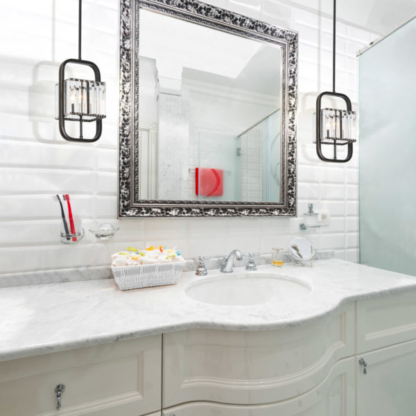 Beveled acrylic shade.