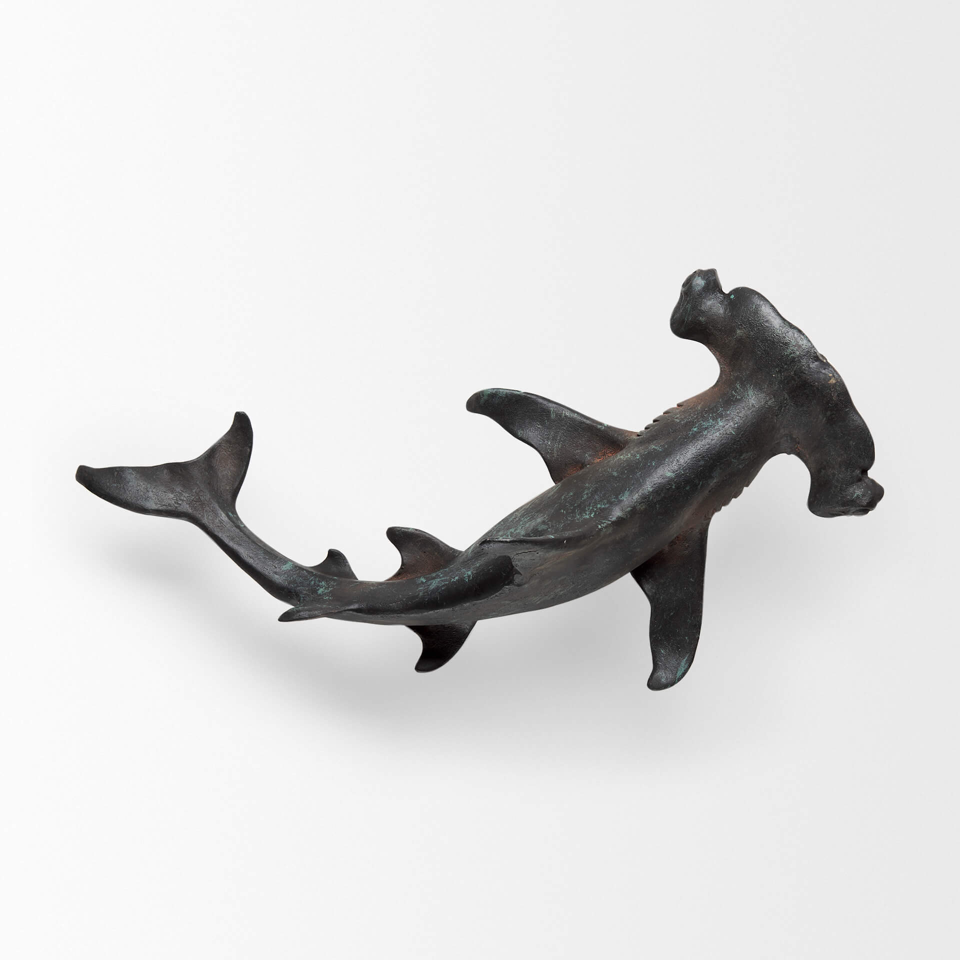 Hand painted resin hammerhead shark wall decor, with natural skin colors designed to be wall hung at any angle.