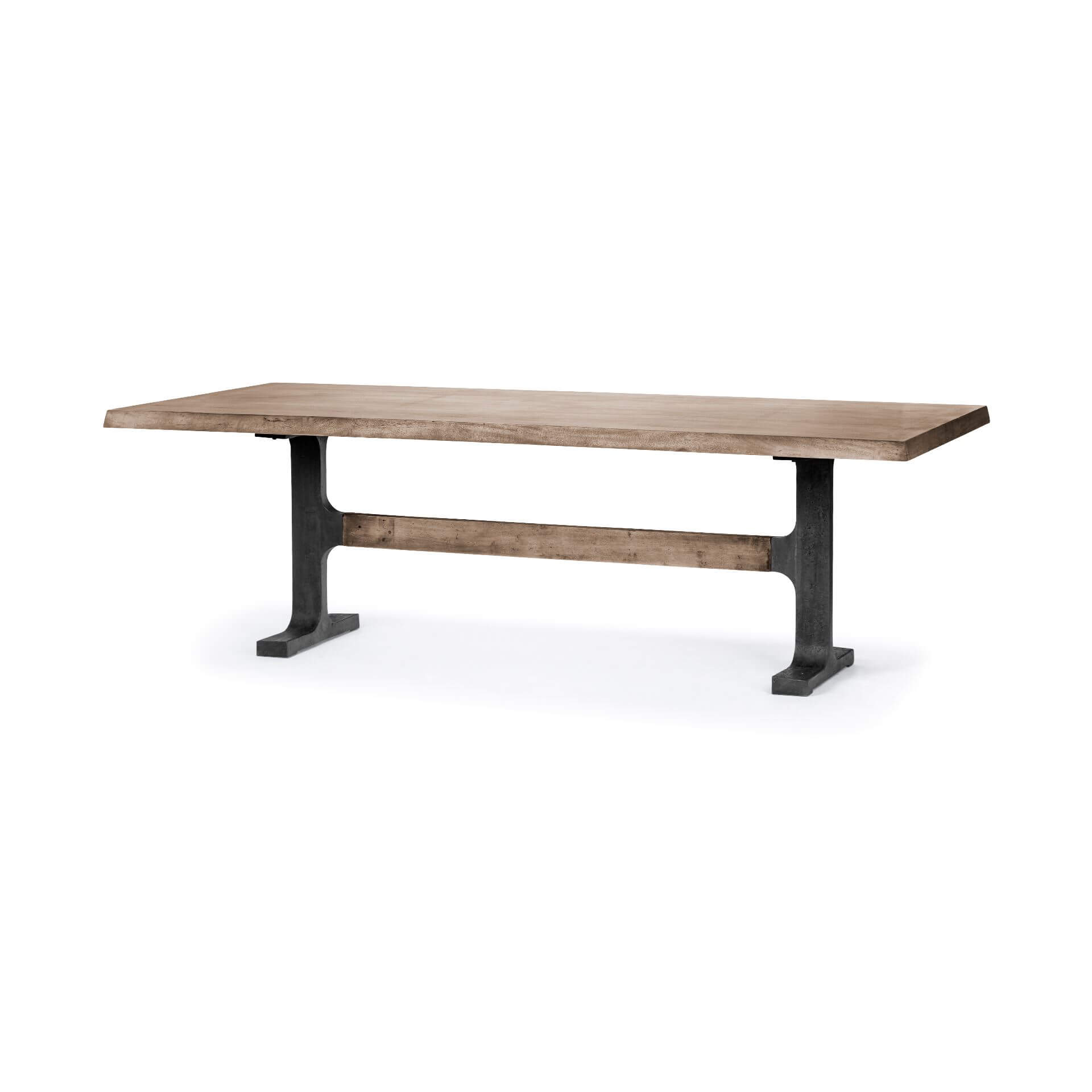 • Solid Iron Frame  The solid wood top of the Araxi is supported by a solid iron, trestle-style base finished in a matte-black polish that is guaranteed to stabilize the table to perfection.