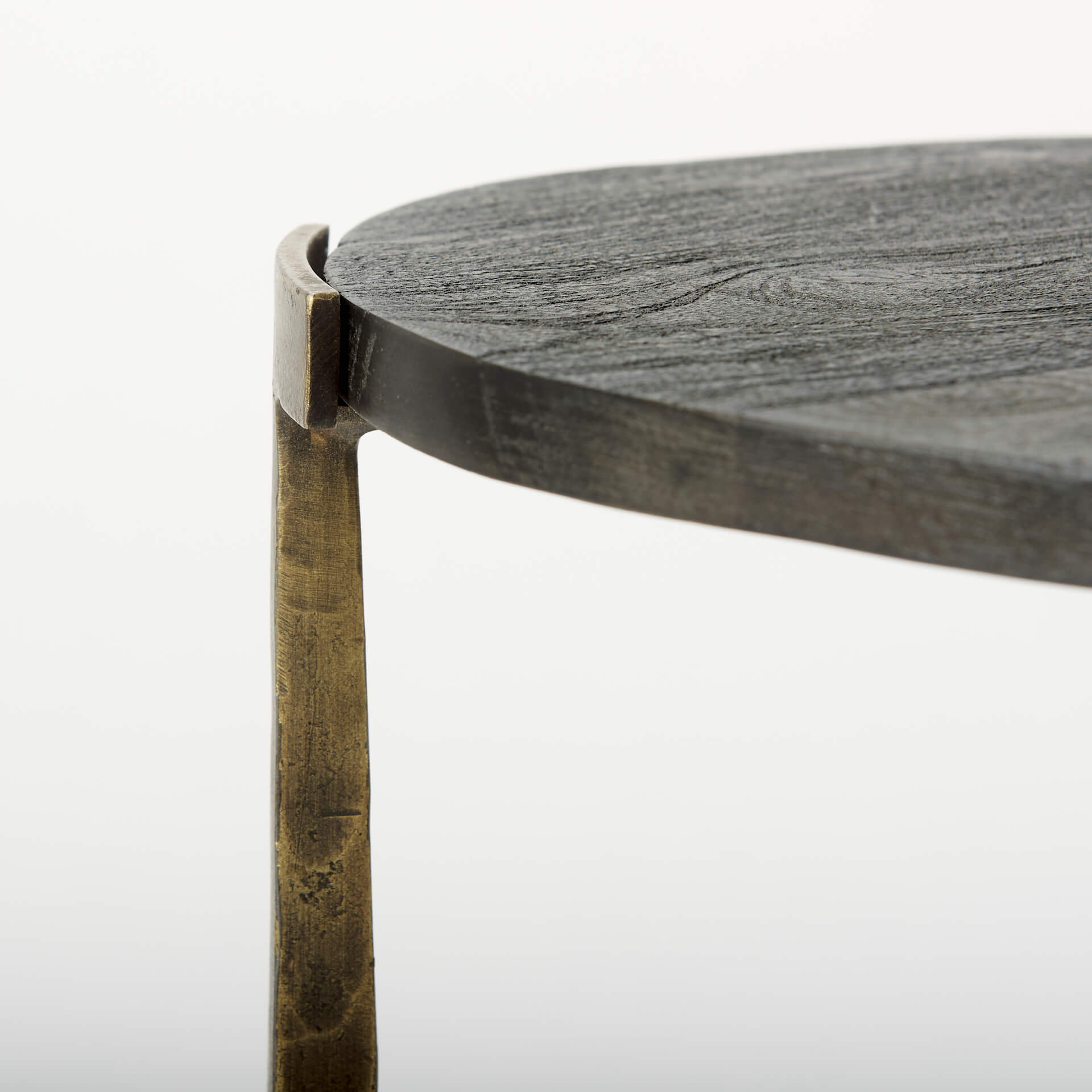 - MaterialsBlack Wood and antiqued hammered gold metal.