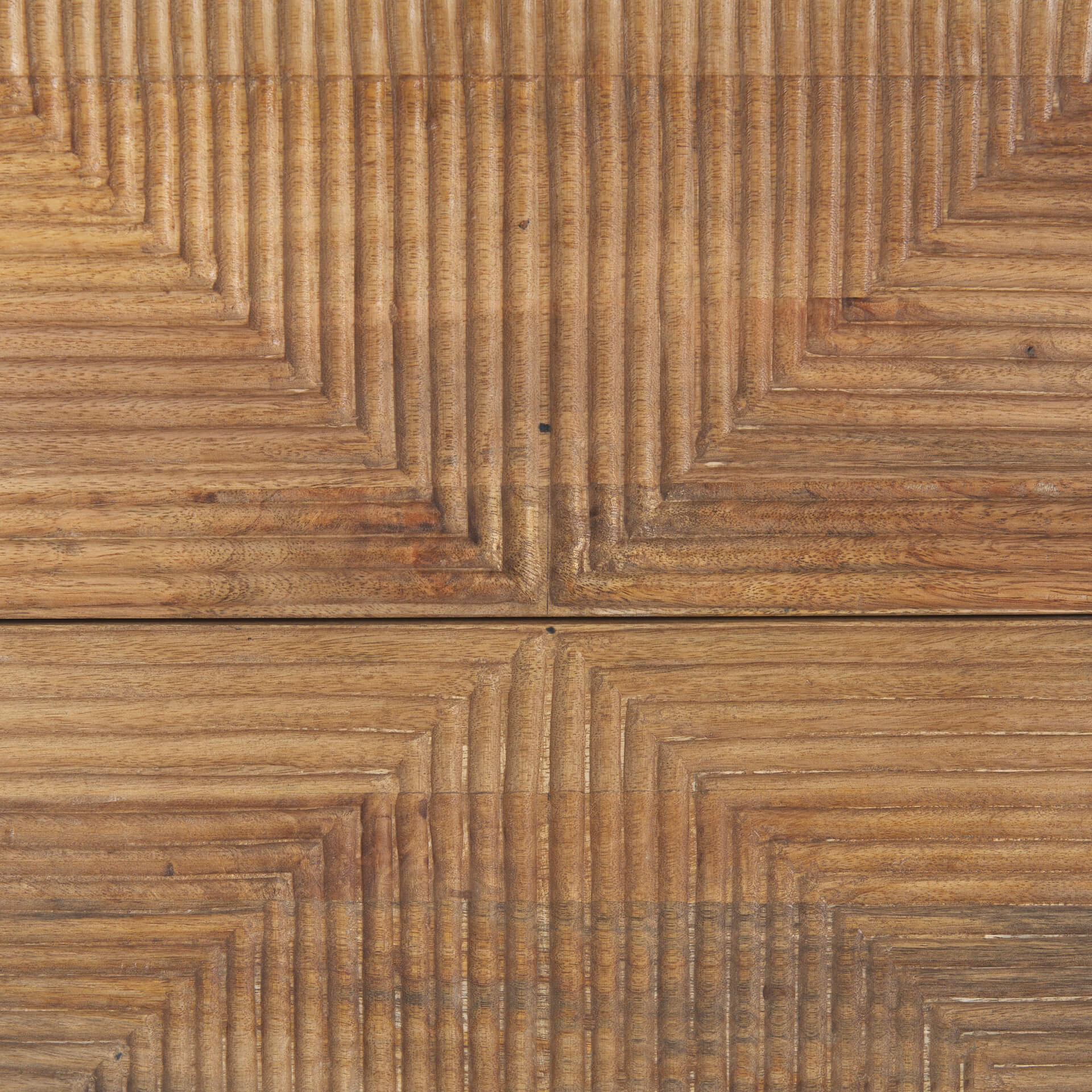 • The two drawers that feature a linear motif with a horizontal and triangle pattern