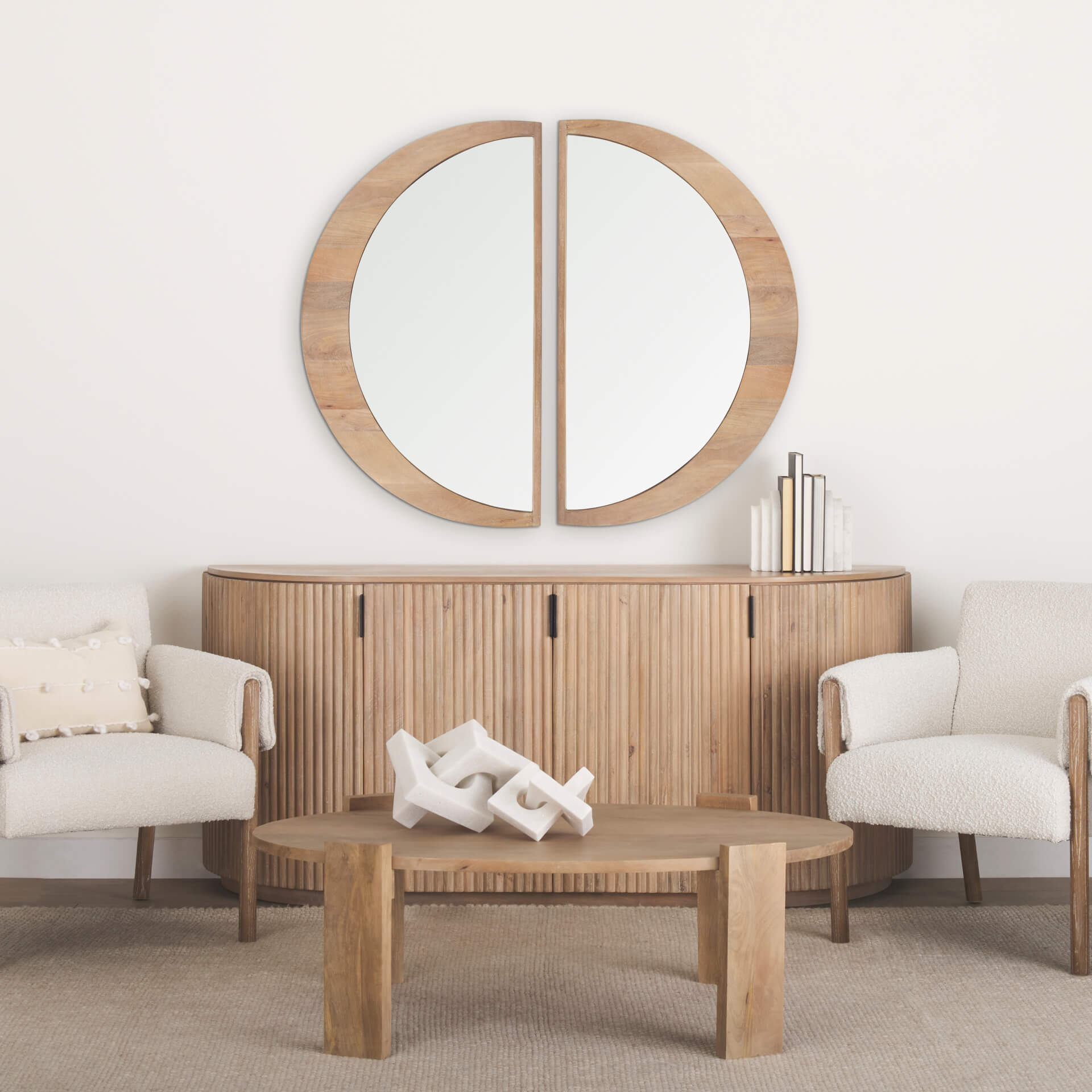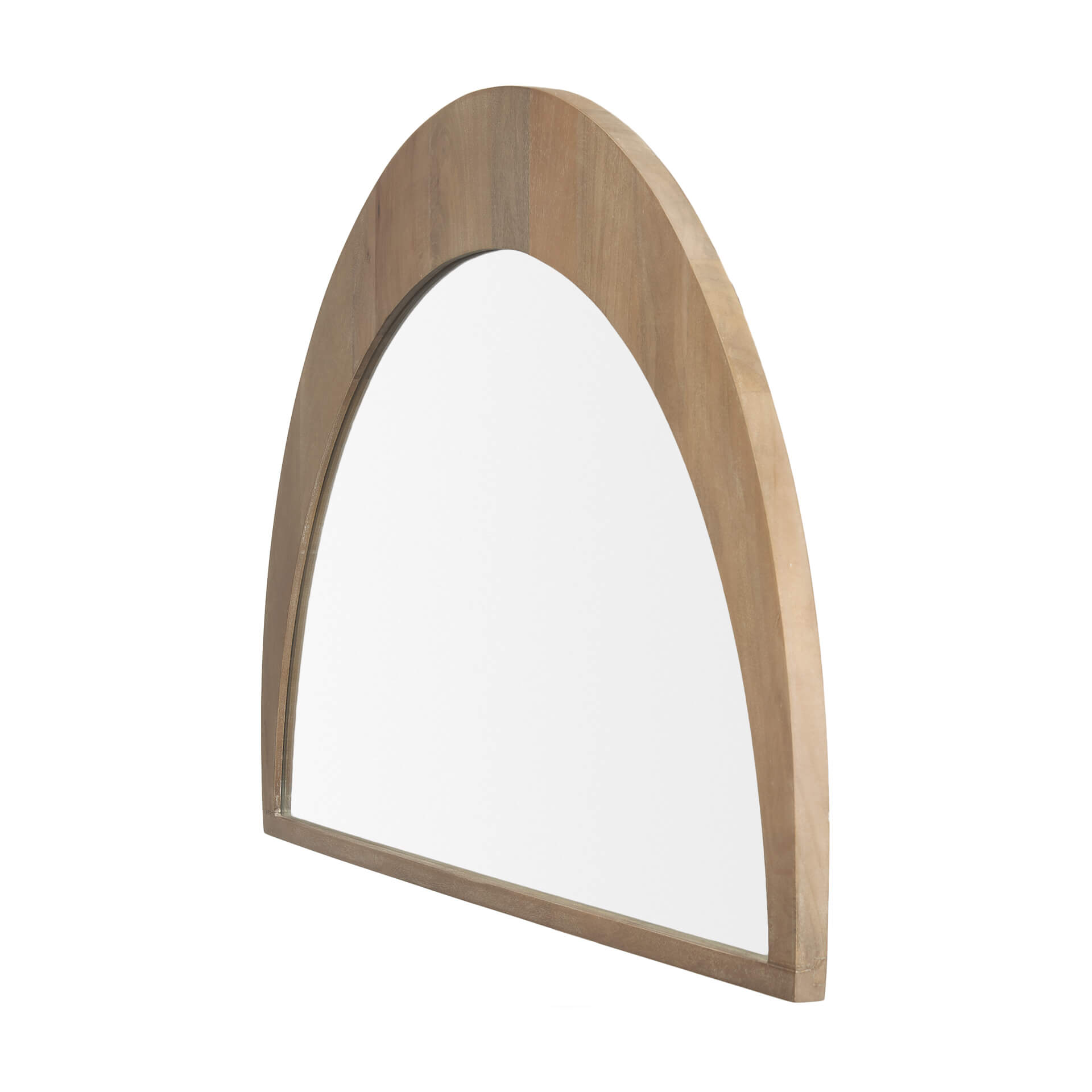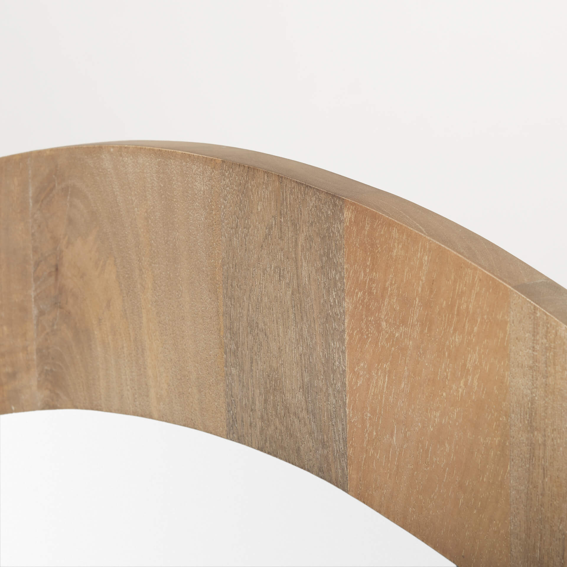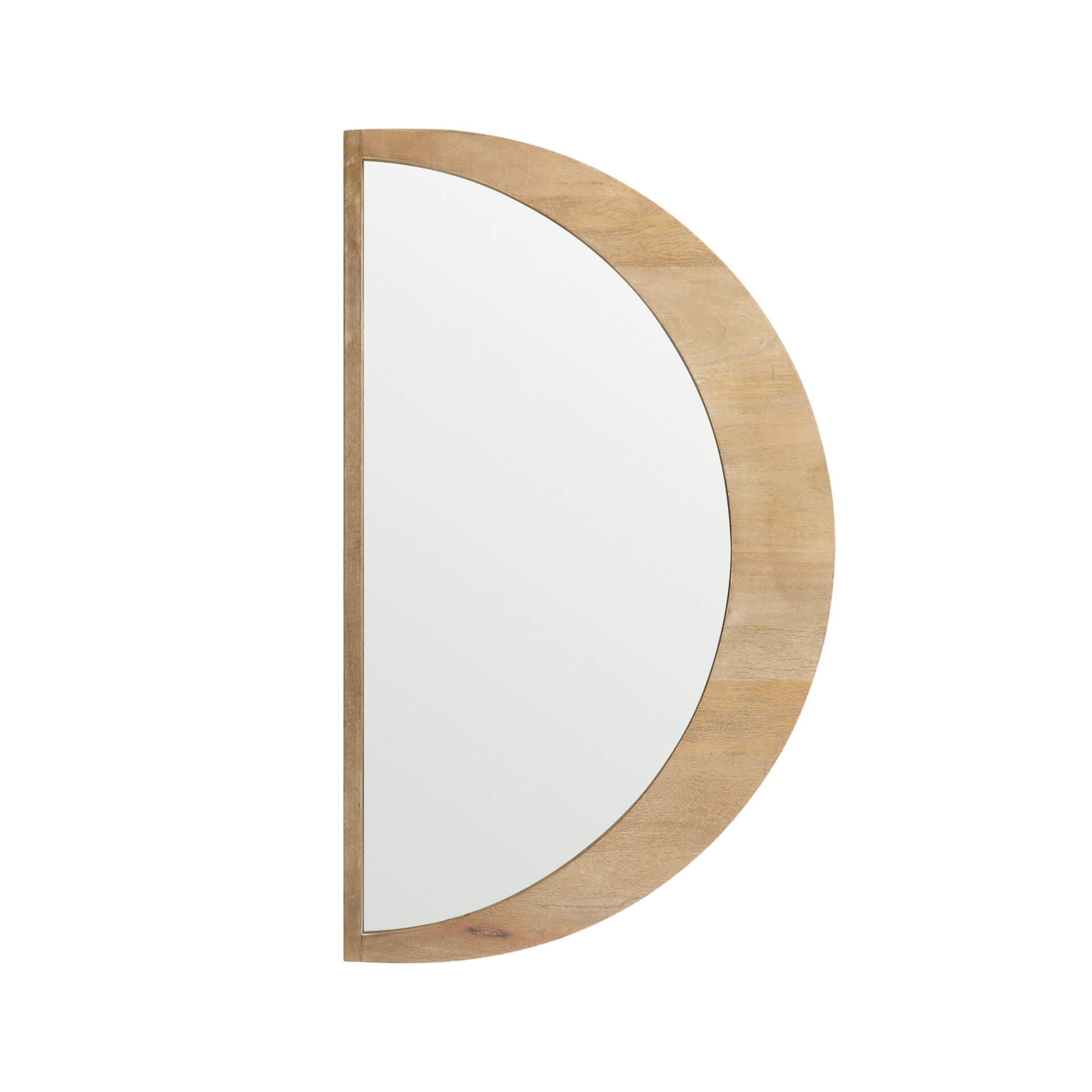 The large, arched Celeste Mirror's half-moon style has been skillfully crafted of solid mango wood in light brown with a smooth finish and gentle white wash. This Celeste Mirrors can be hung in four different ways. The Celeste Wall Mirror is stunning on its own and grouped together to create an eye-catching visual display.