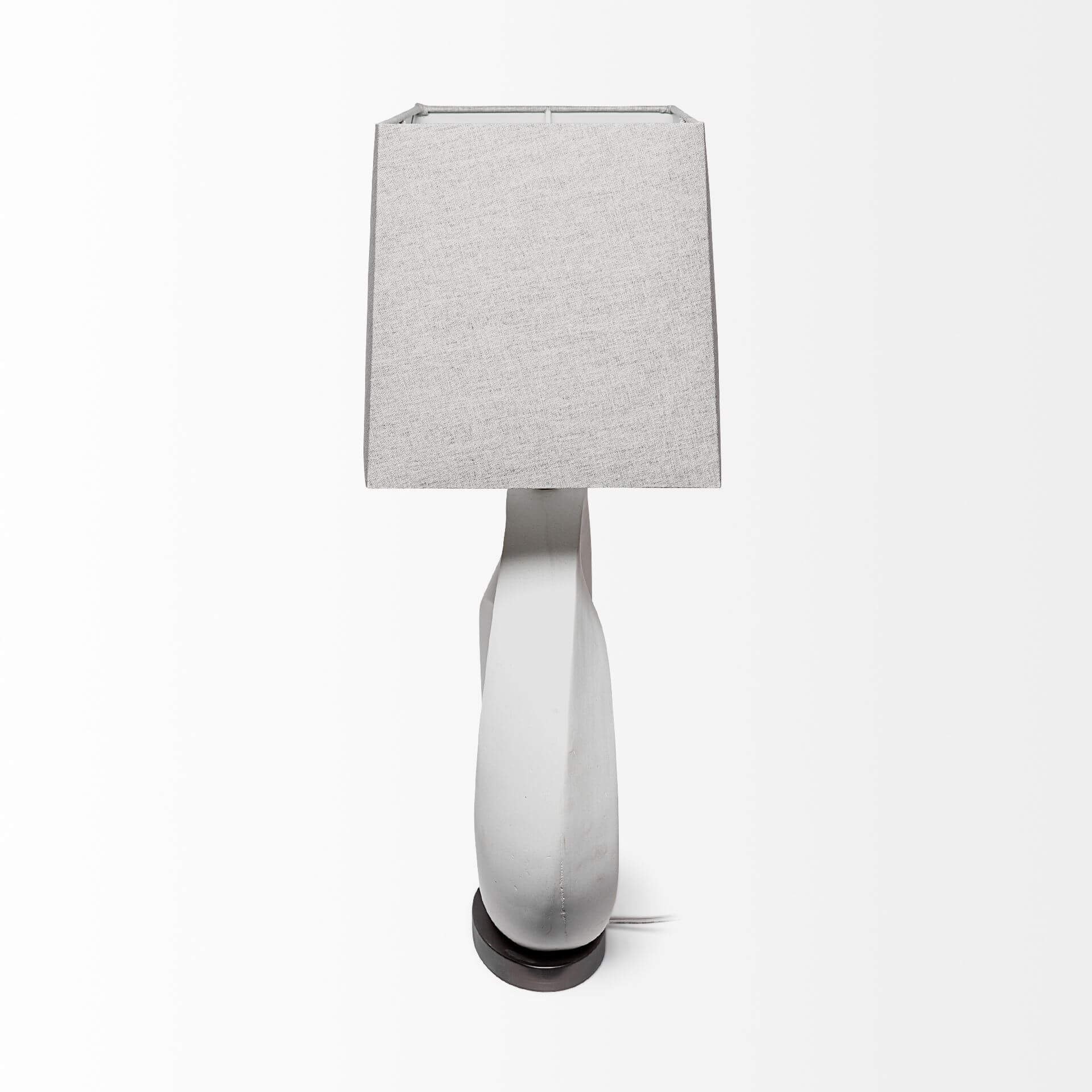 - Superior Finish Featuring a mix of materials and neutral colors, the Celtica is a spectacular table lamp that boasts of a circular, resin base finished in a white tone that complements the grey fabric lampshade