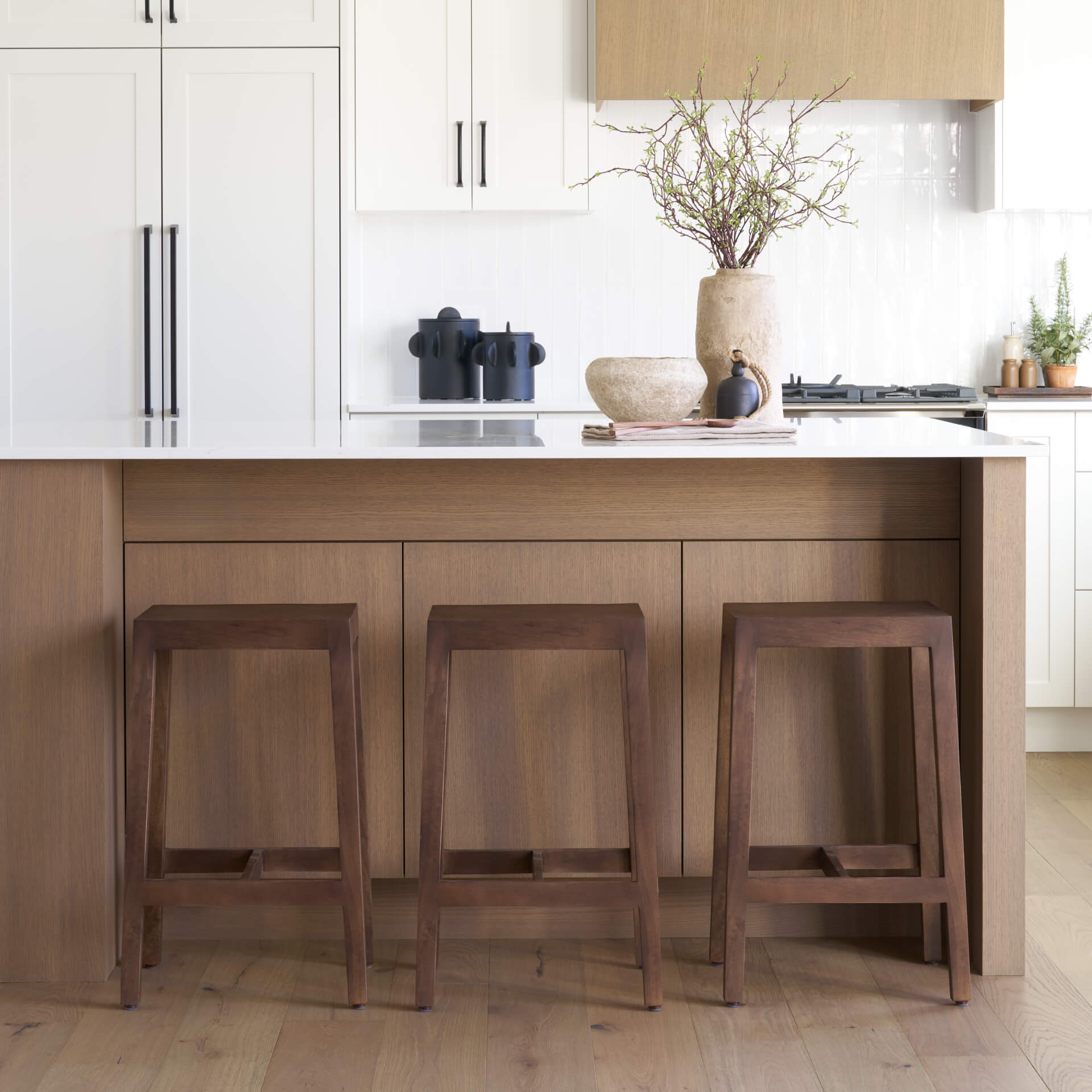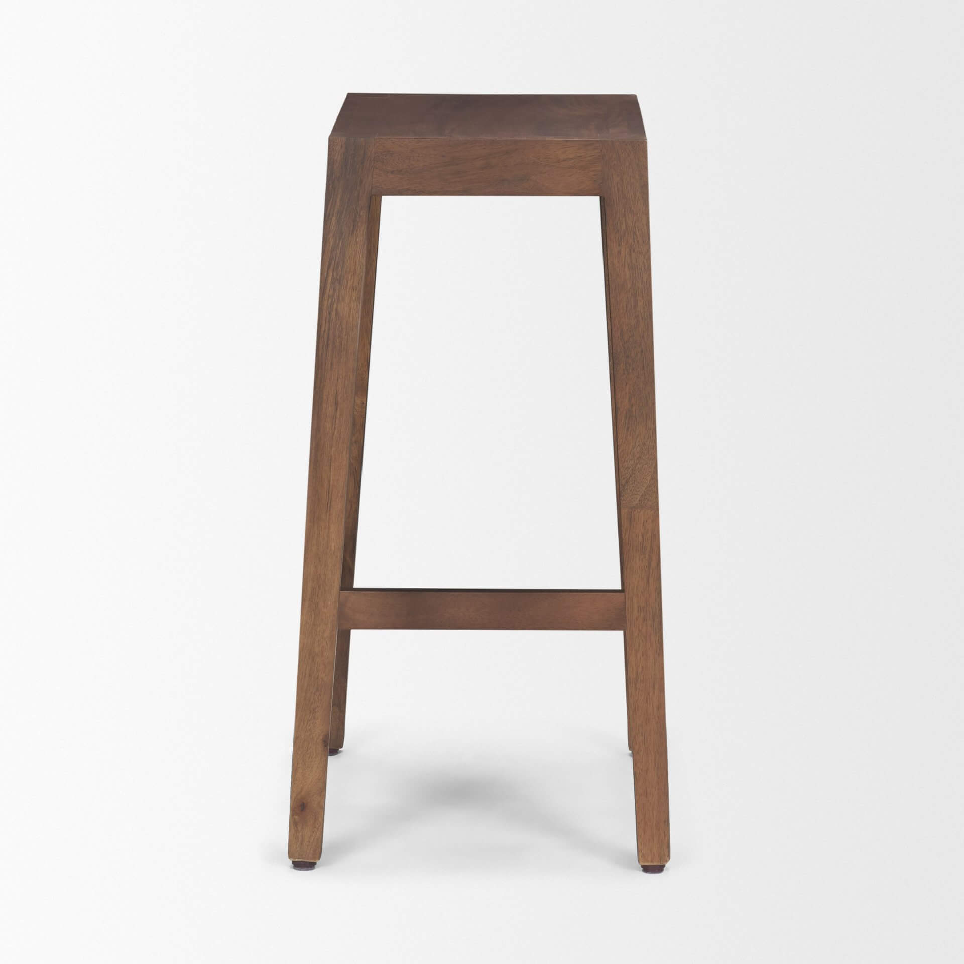 The Colony Bar Stool offers a timeless, minimalist profile, elevated by the rich warmth of its medium brown finish. Crafted from solid wood, its clean lines and gently tapered legs strike a perfect balance between modern structure and approachable charm. The darker tone brings depth and sophistication, making it a versatile choice for transitional or modern-rustic interiors. A built-in footrest enhances comfort while preserving the stool’s crisp silhouette. Ideal for kitchens, bars, or elevated dining spaces.