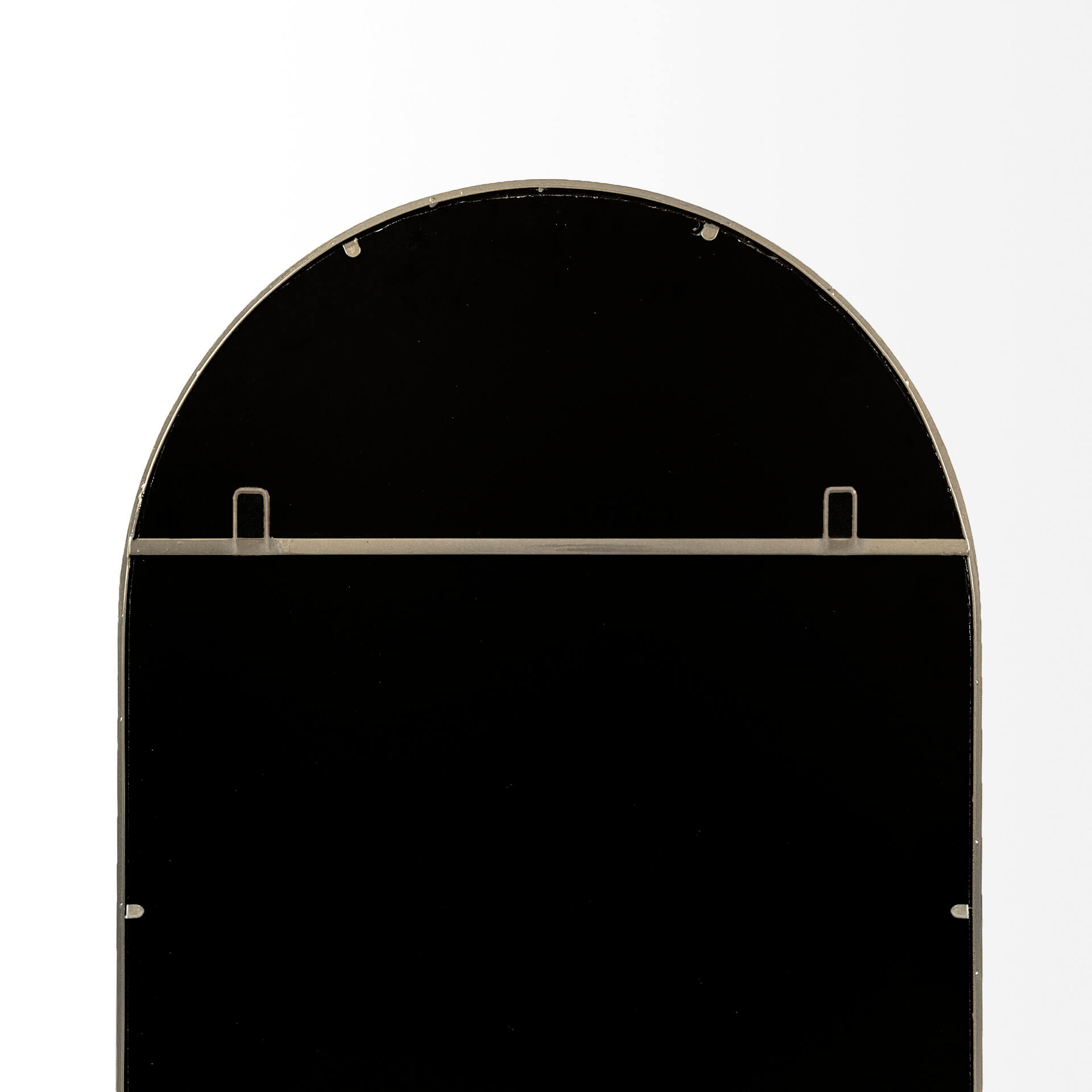 • Metal and Mirror Construction  Edged by a slender iron frame shaped into an elegant rounded arch, this mirror blends simple mid-century style with elements of Ancient Roman architecture.
