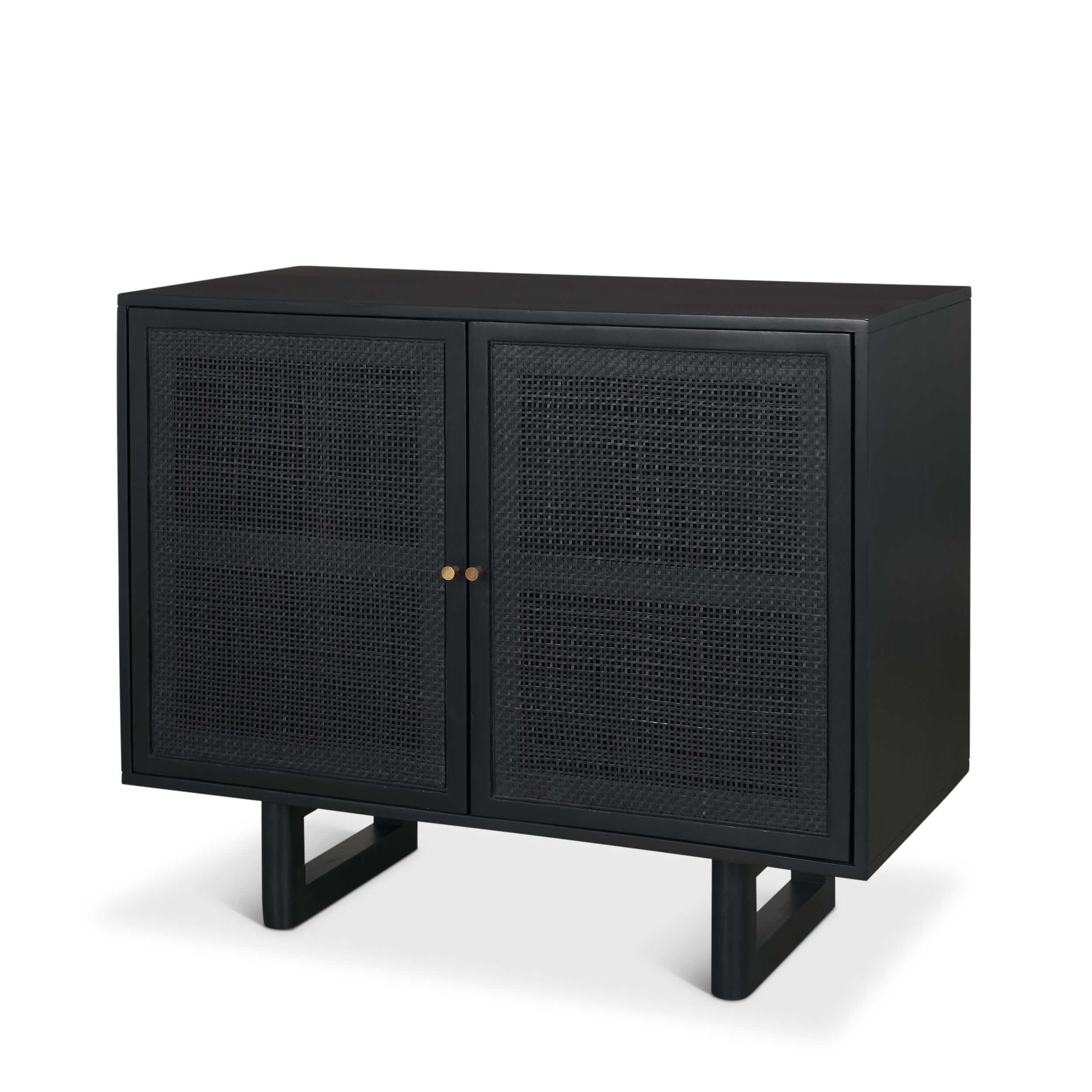 Crafted from smooth mango wood and natural cane with solid brass knobs
