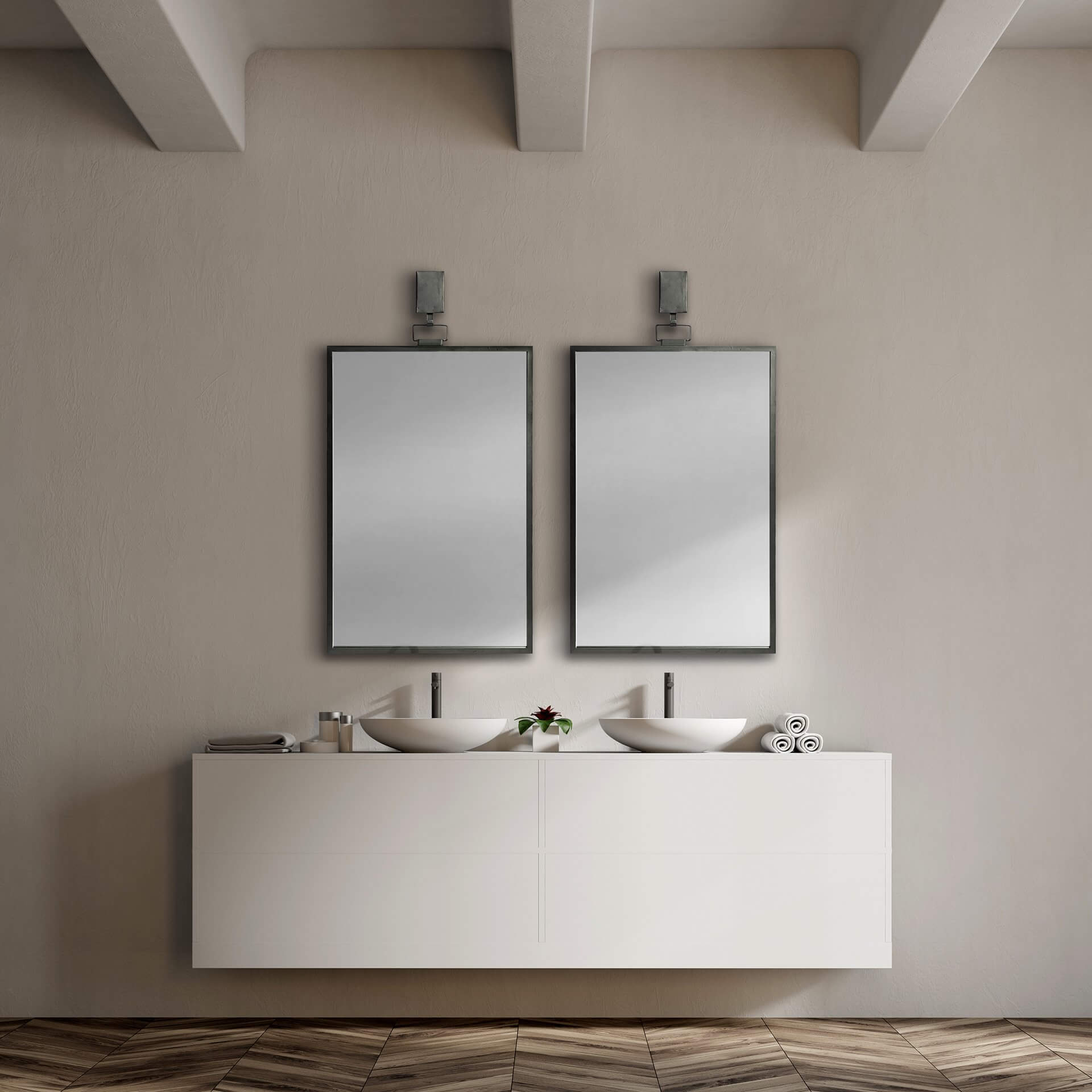 - Premium Finish The Grimm is finished in a gun metal gray tone that makes this stylish mirror stand out in even the most luxurious spaces.