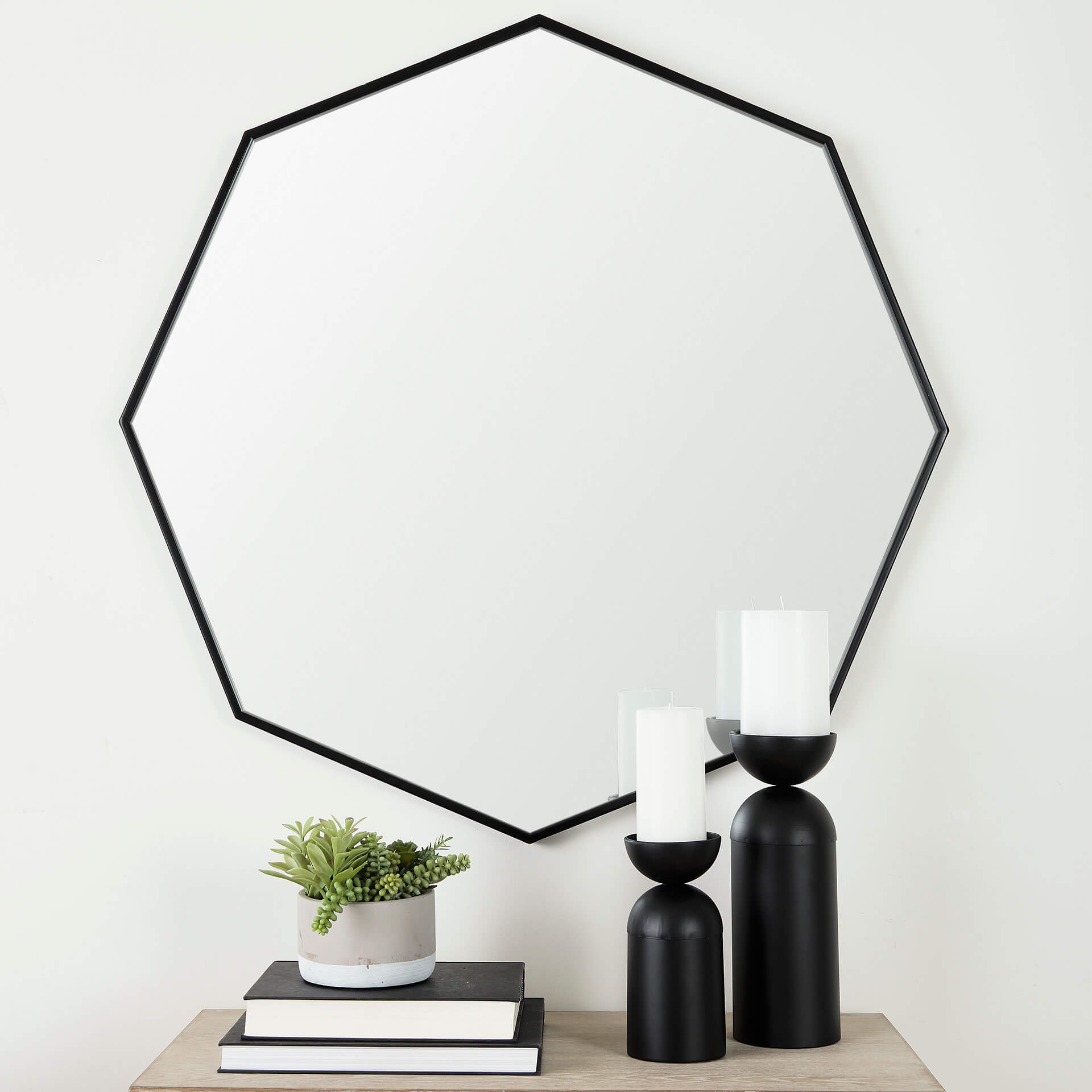 The Helix is a stunning octagonal wall-mounted mirror that flaunts a sleek, metal pipe-style periphery finished in a matte-black tone. With a geometric design and elegant vibe to it, the Helix looks great in spaces based on the Mercana Modern or Industrial design styles.