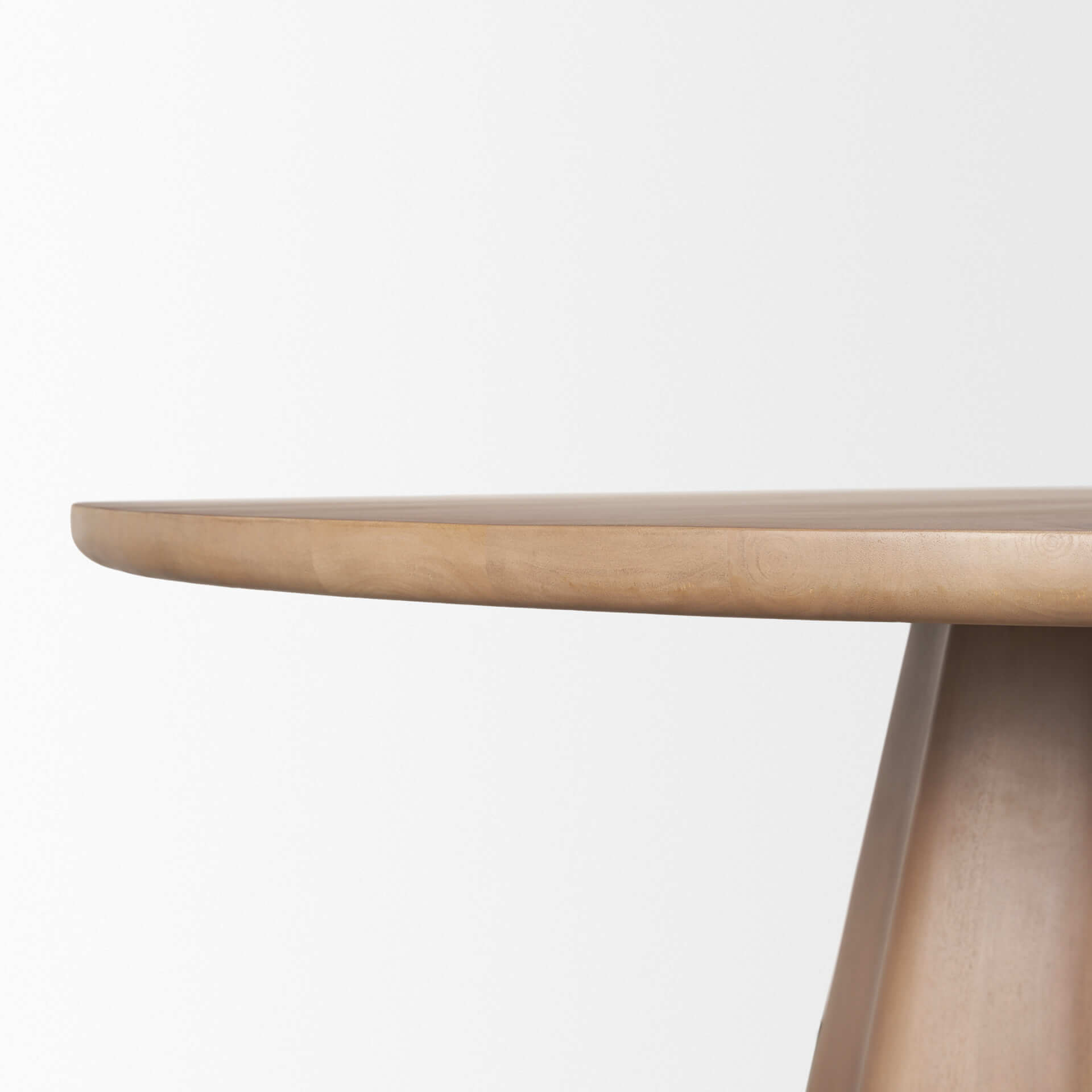 The Jovani 48" Round Dining Table combines elegance and artistry, crafted from smooth, light brown wood with a refined round tabletop featuring gently rounded edges. Its striking pedestal base showcases unique scalloped waves and rippled aesthetics, creating a dynamic, curvilinear form that evokes organic beauty. The flowing lines and sculptural silhouette bring a sense of movement and modern sophistication to any dining space. Perfect as a centerpiece, this table blends functionality with a bold, artistic statement. Part of the Jovani Collection.