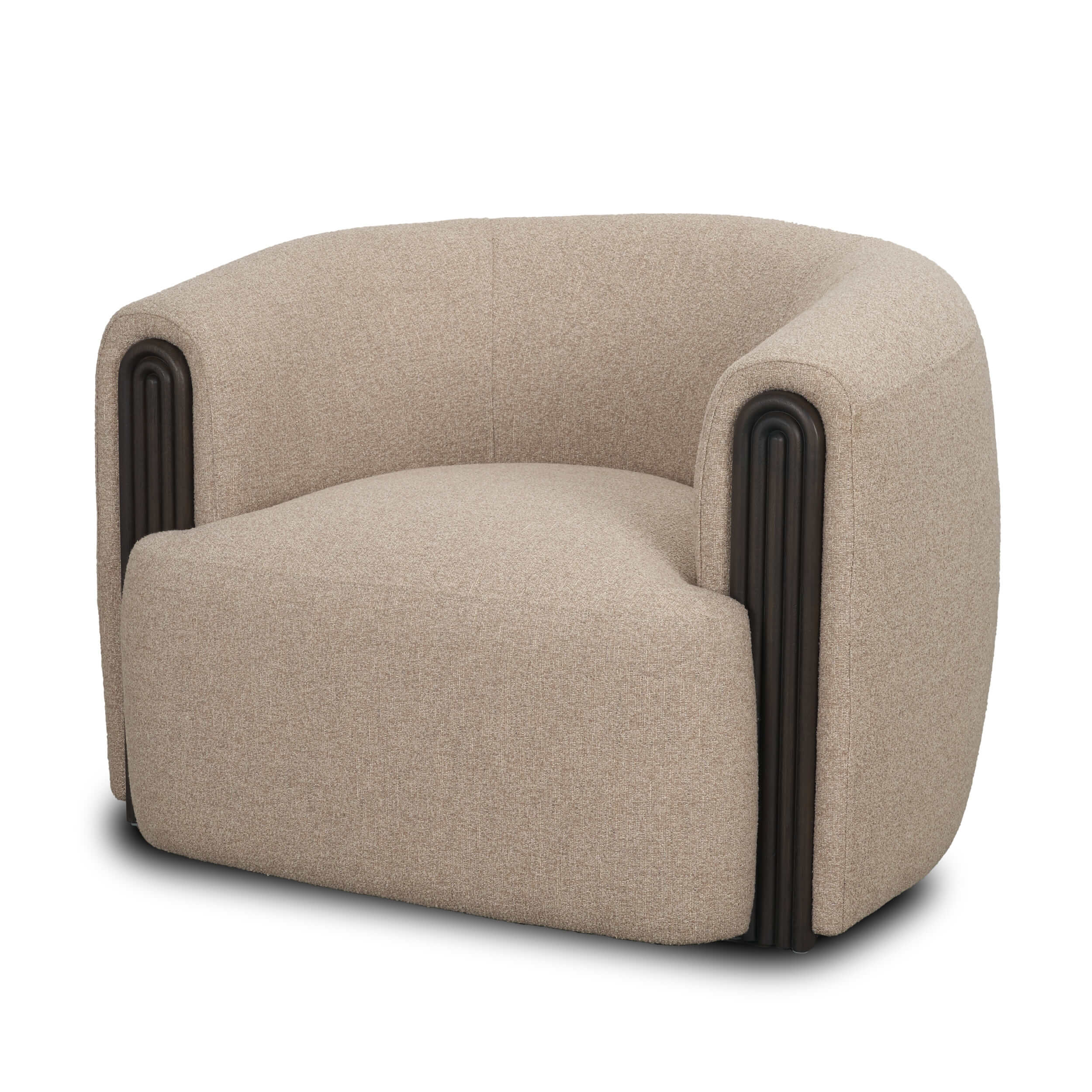 Barrel-style backrest with clean curves and a relaxed, refined form