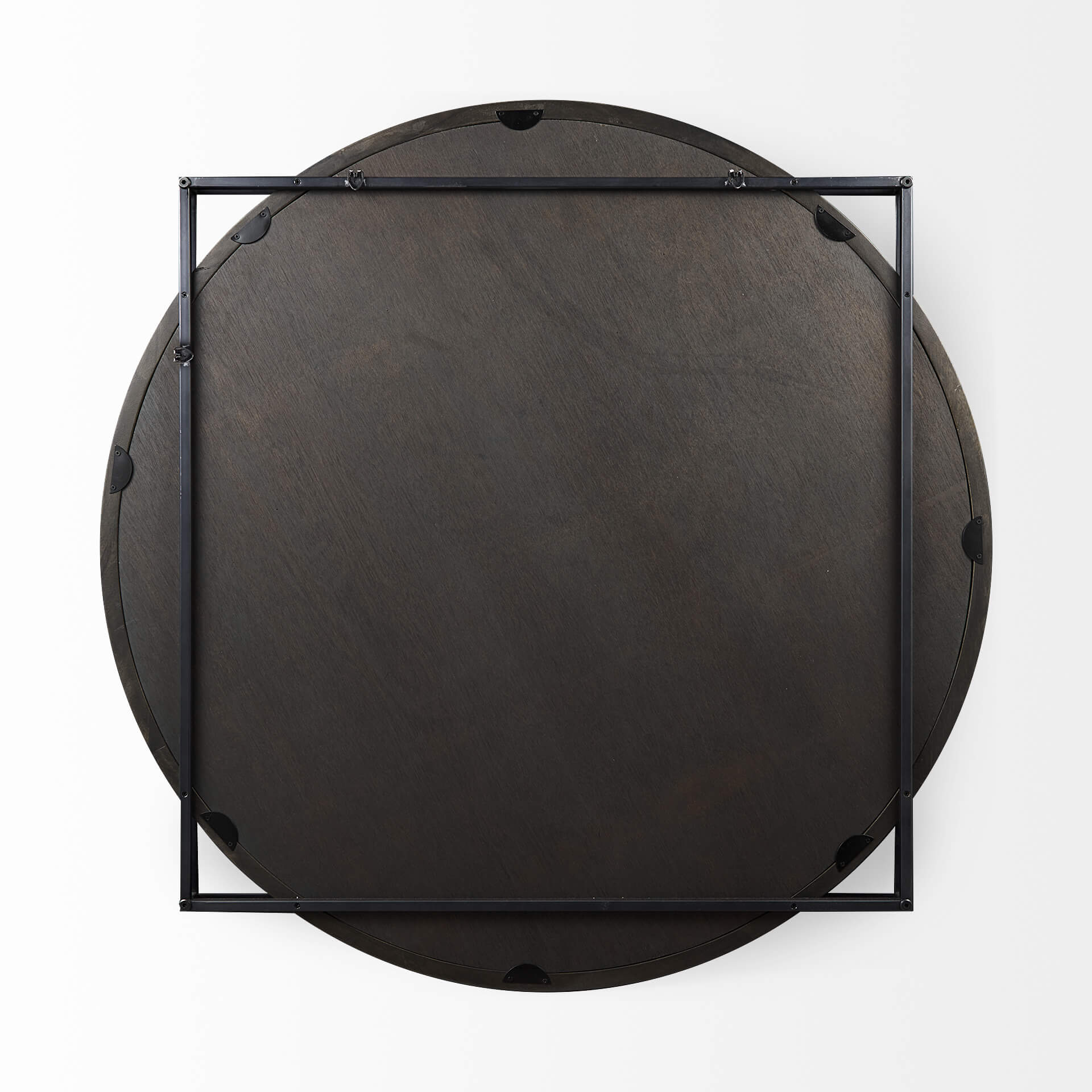 • Smoothly Polished Finish  The smoothly polished dark wood of the Norbert blends perfectly with the sleek metal frame to surround a shining mirrored glass face.