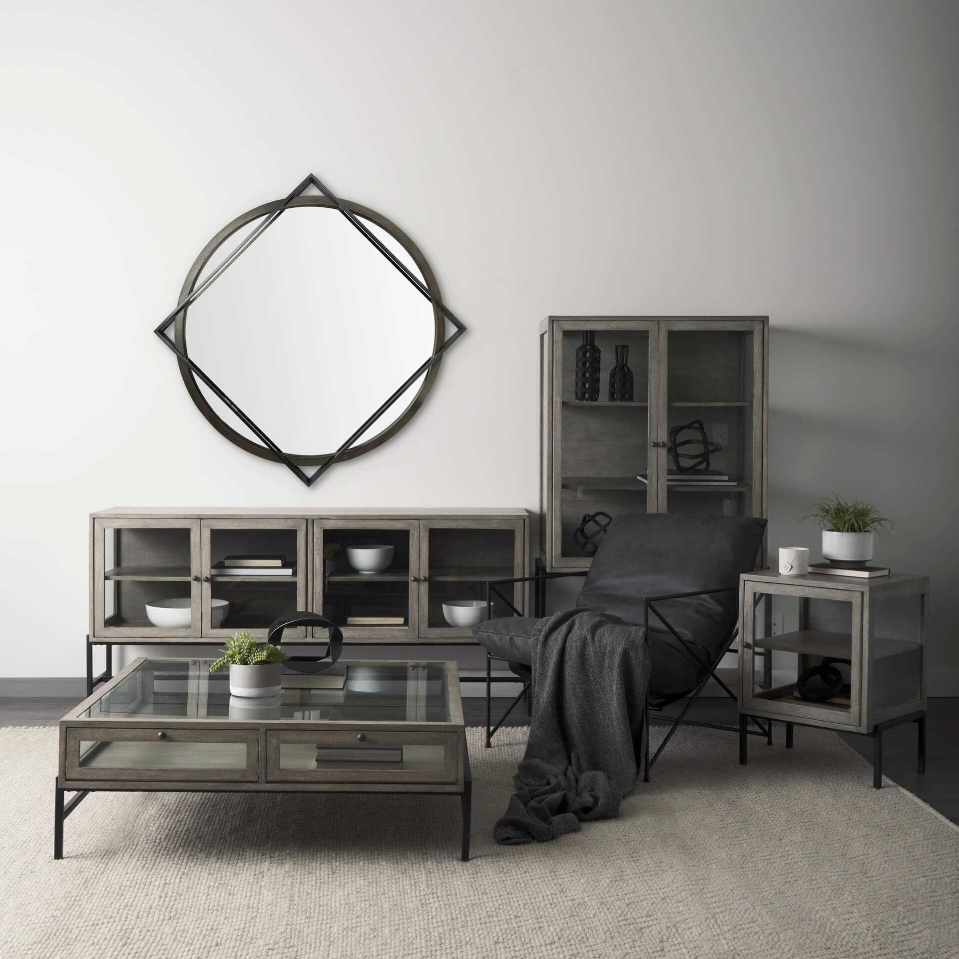 The Norbert is an extraordinary mirror that mixes sleek metal with dark polished wood. The overlapping geometric shapes create a visually appealing piece guaranteed to catch one’s eye. This sophisticated piece perfectly enhances a space based on the Mercana Modern or Industrial style.