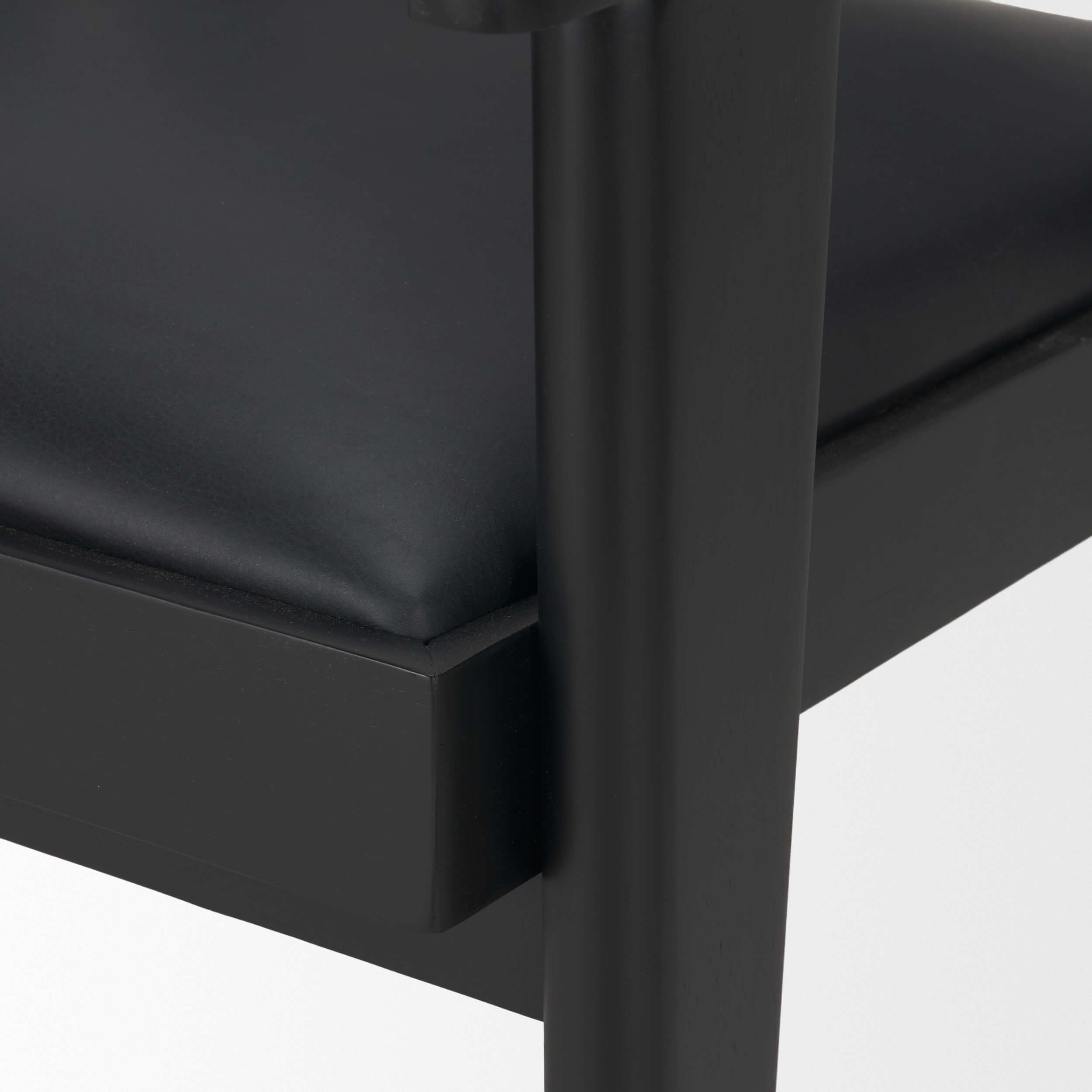 Full-grain black leather seat delivers a bold, elevated look
