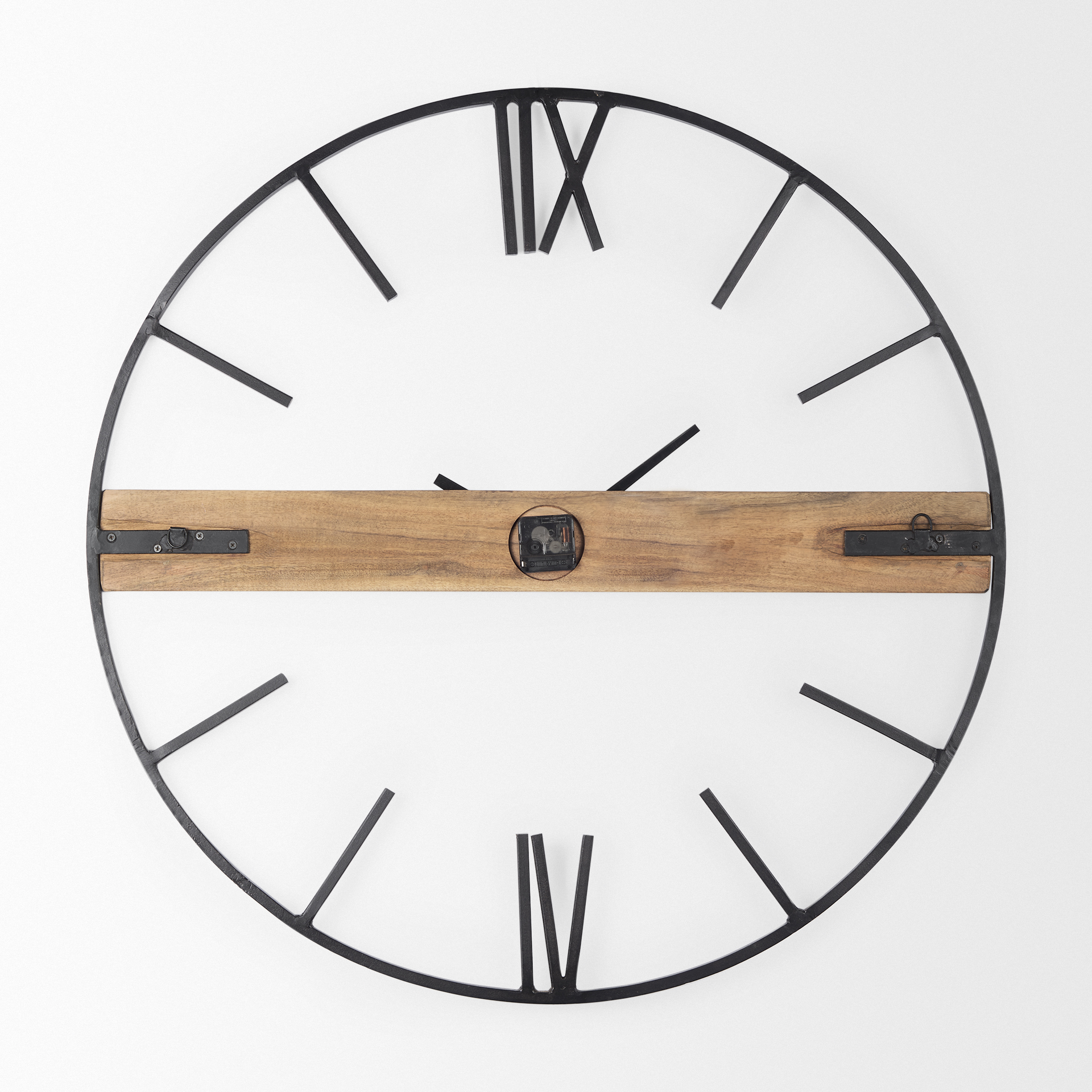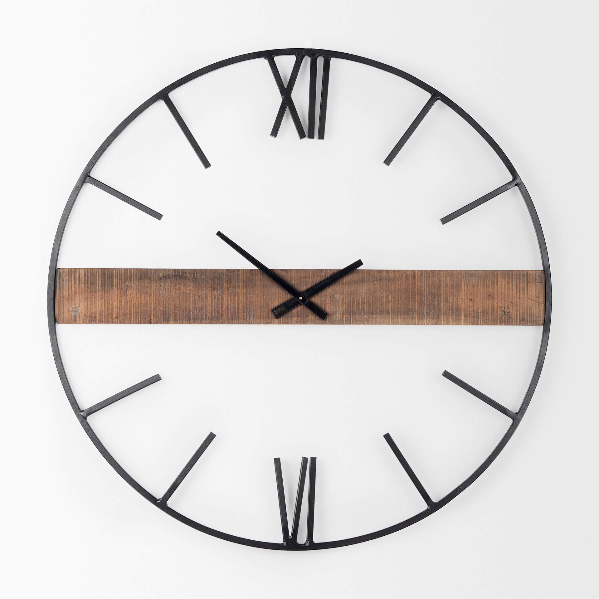 - Metal and Wood Construction This stunning clock is crafted from iron and wood and polished in a black and brown tone.