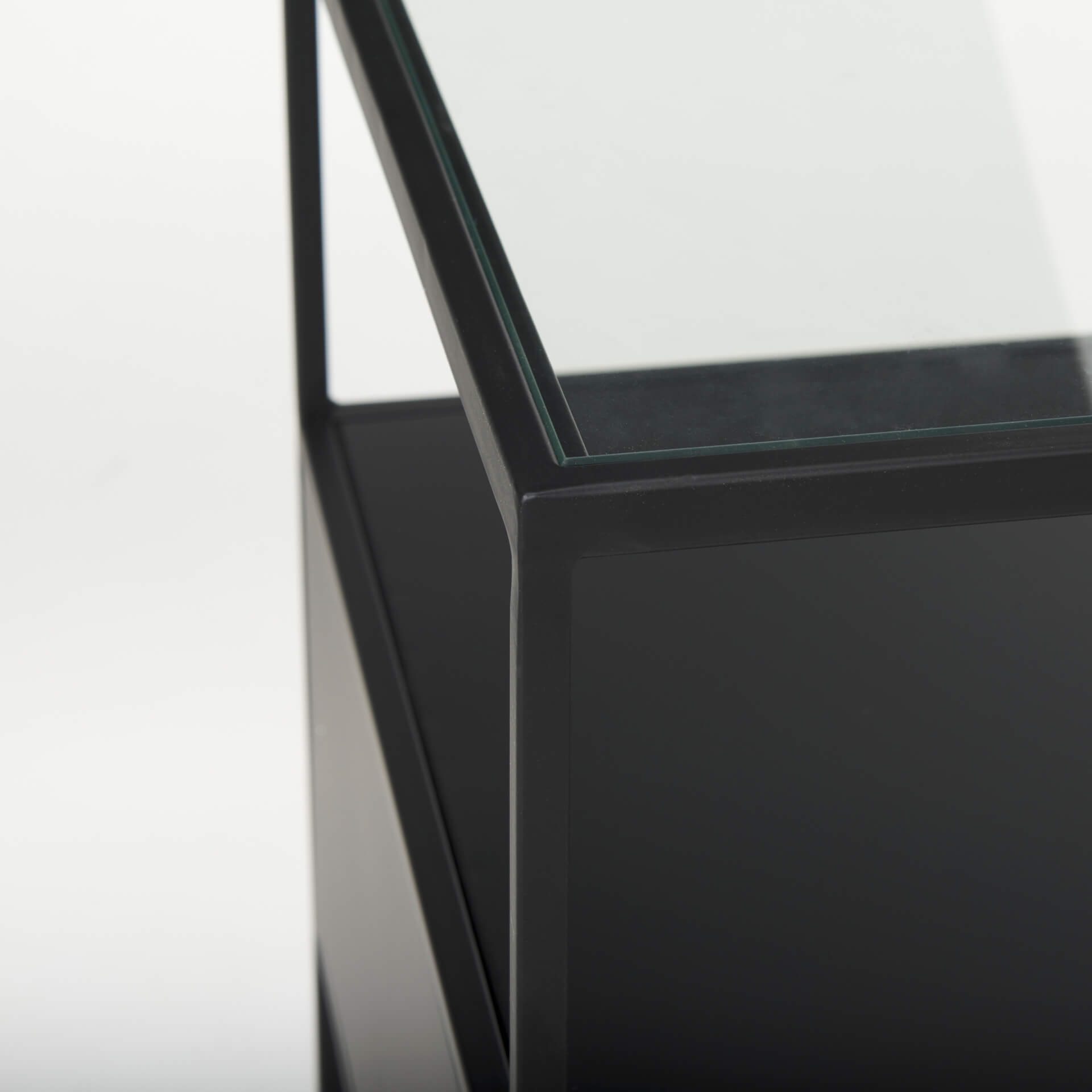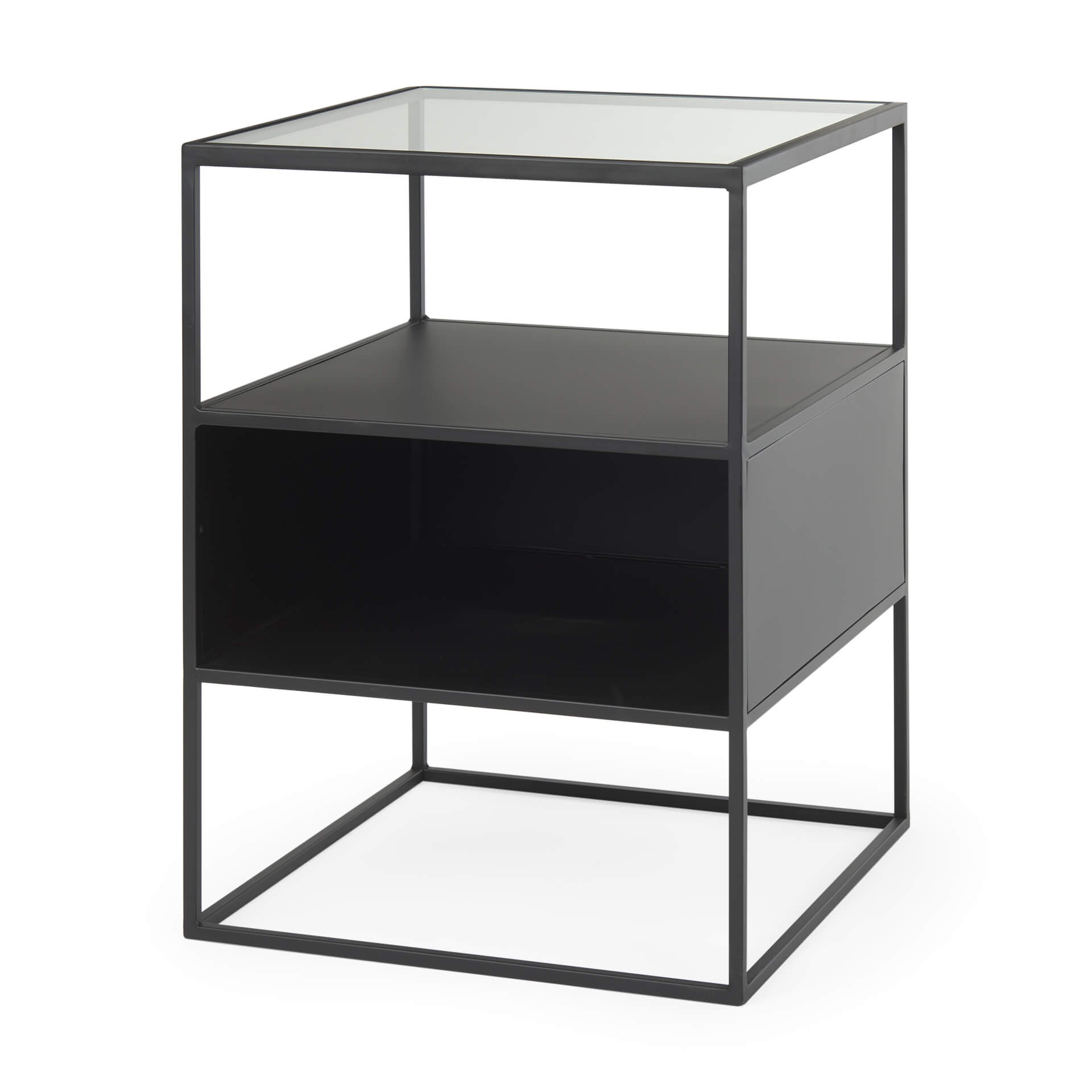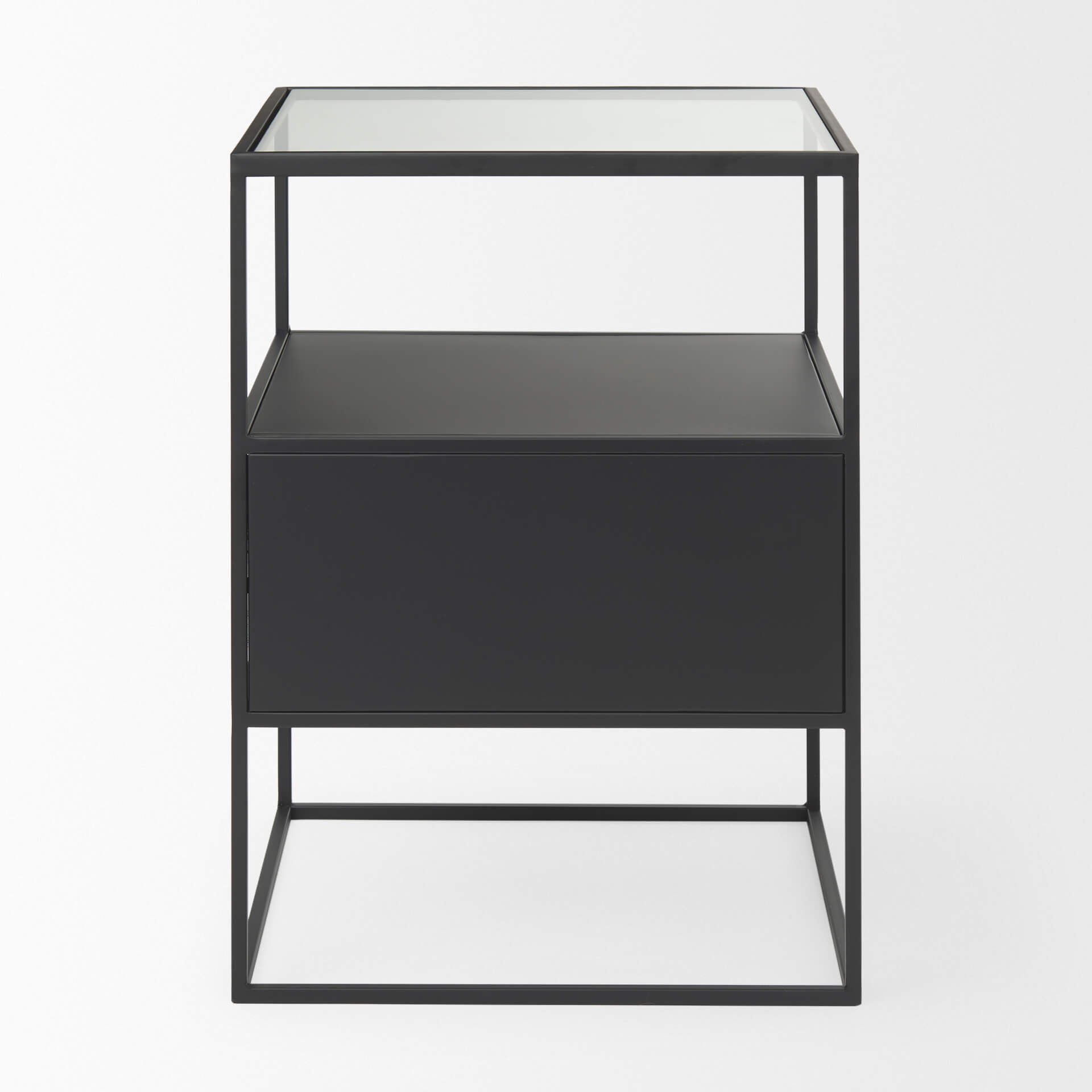 Enjoy the wonderfully clean lines and modern appeal of the Samson Side Table. A tribute to all things minimalist, this side table features a neat outline created by a sturdy iron frame that has a matte black finish. Within the frame is a bold matte black, iron compartment for storing essentials away; and tempered glass top to add to its contemporary look.