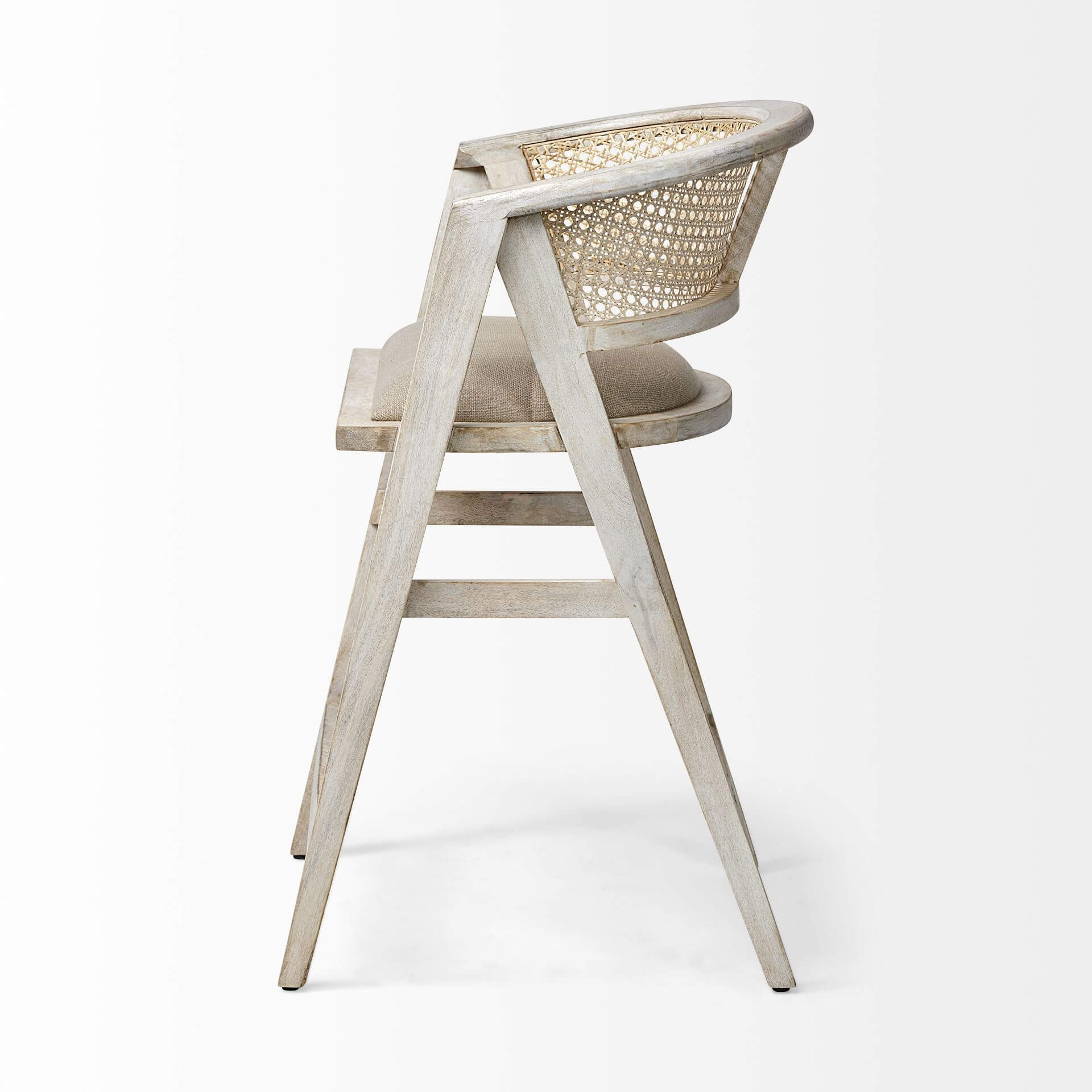 Featuring a blonde Indian mango wood frame and triangular leg design, the Tabitha III counter-height chair adds a touch of coastal elegance to your bar counter. The Tabitha III dons a curved cane back and a perfectly padded natural linen seat that guarantees unparalleled comfort, even when lounging at the bar counter for hours at a stretch. With its blonde wooden tone and simple design, the Tabitha III pairs well with most bar counters and fits perfectly in spaces based on the Coastal or Tropical design style.