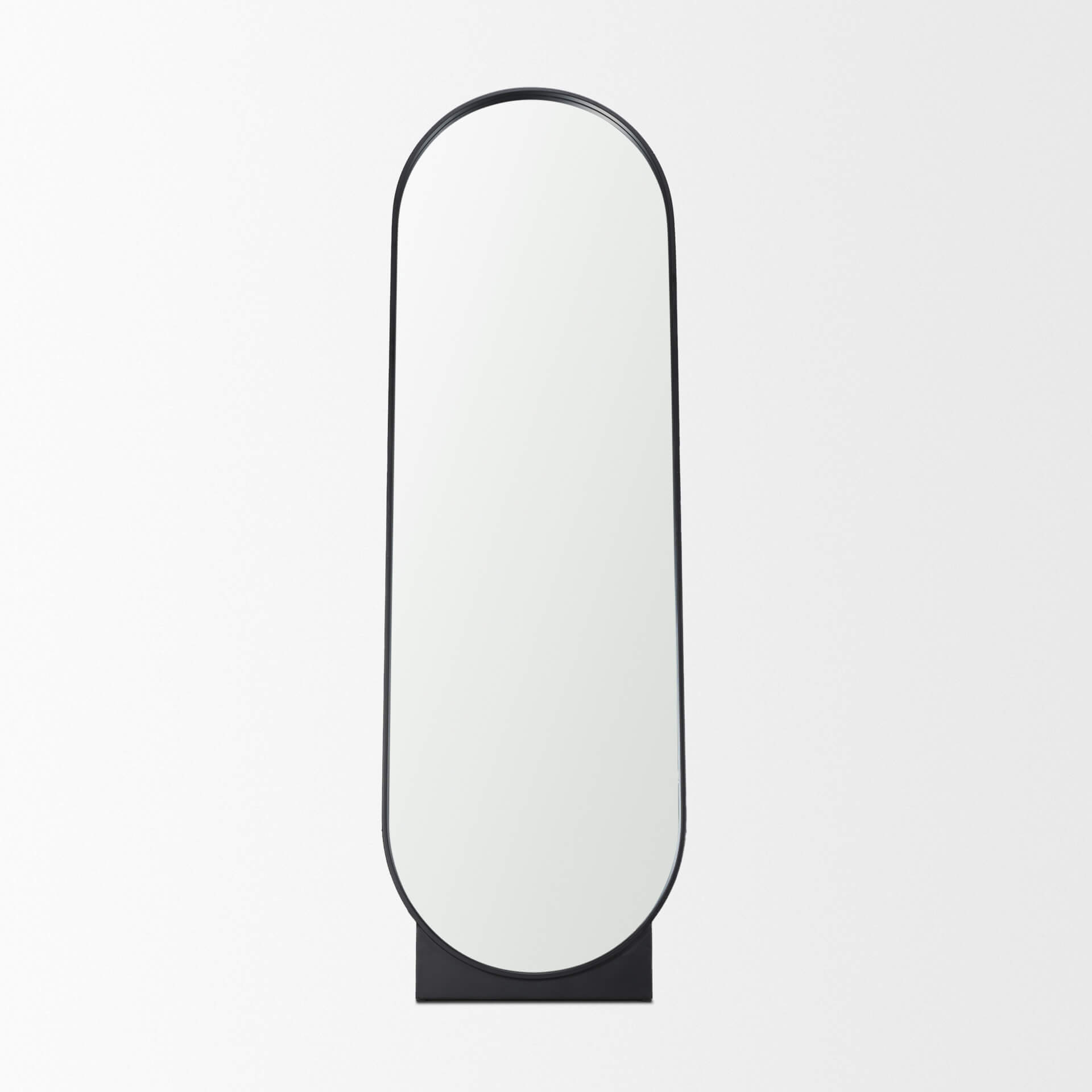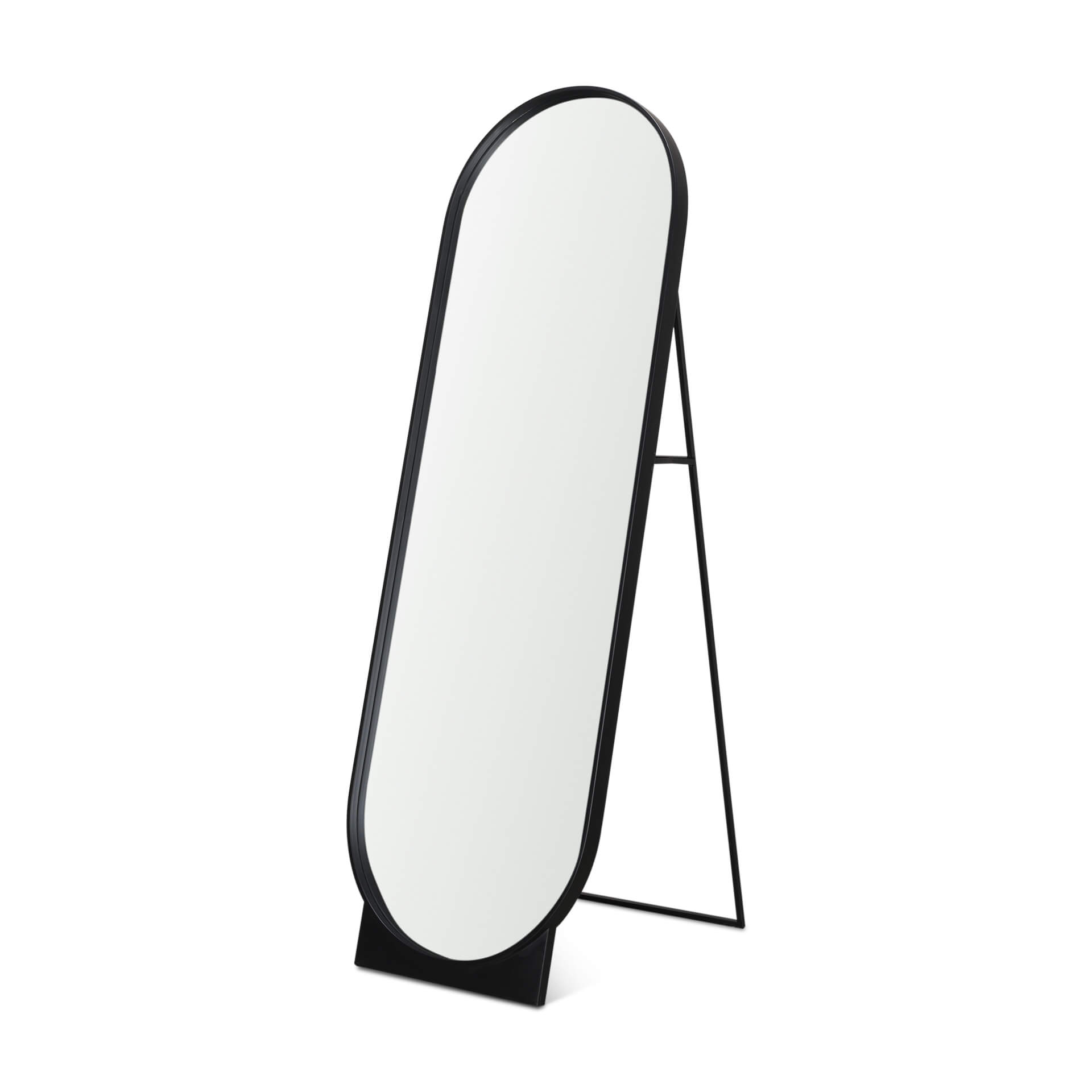 Tillie is an oblong free-standing floor mirror with a matte black metal frame.