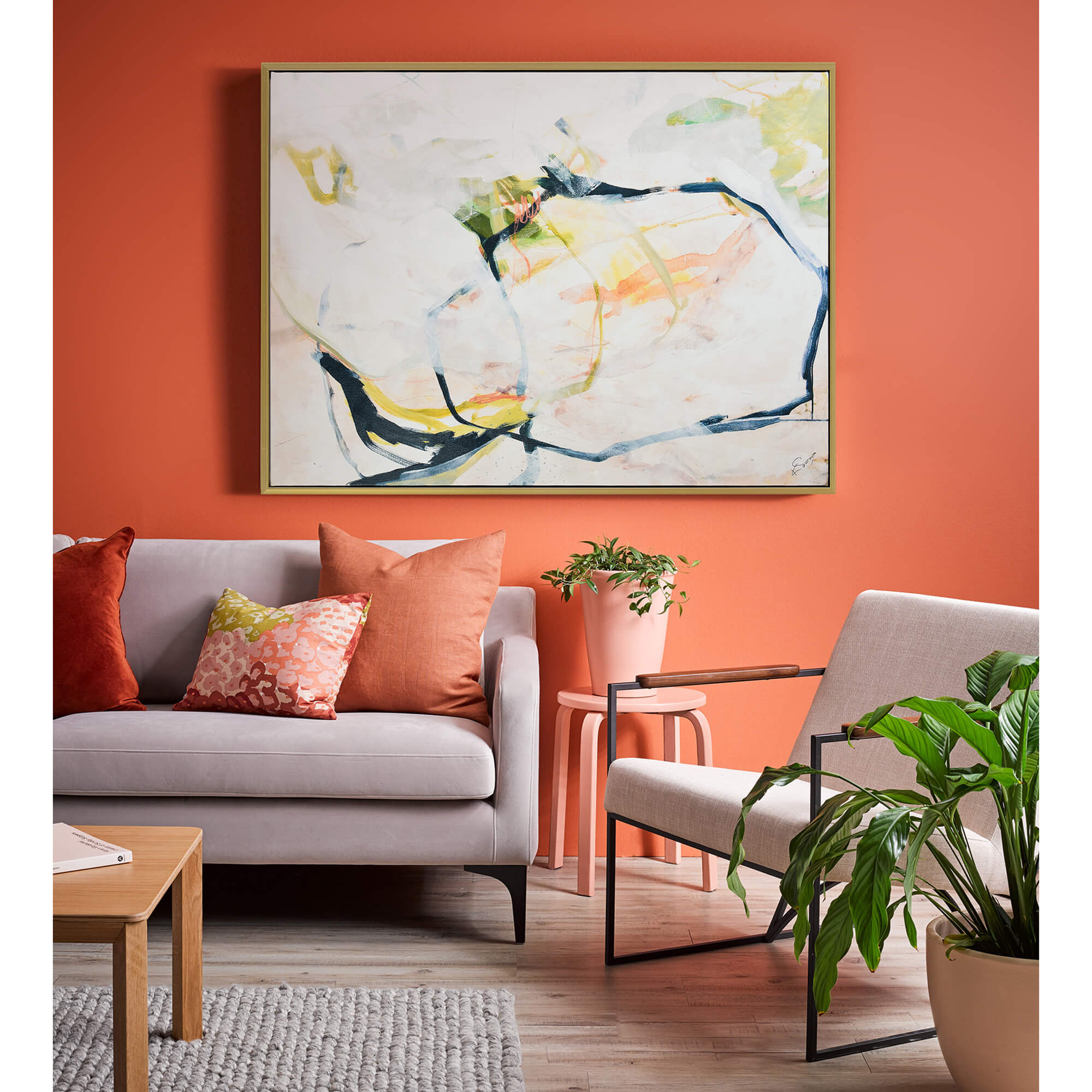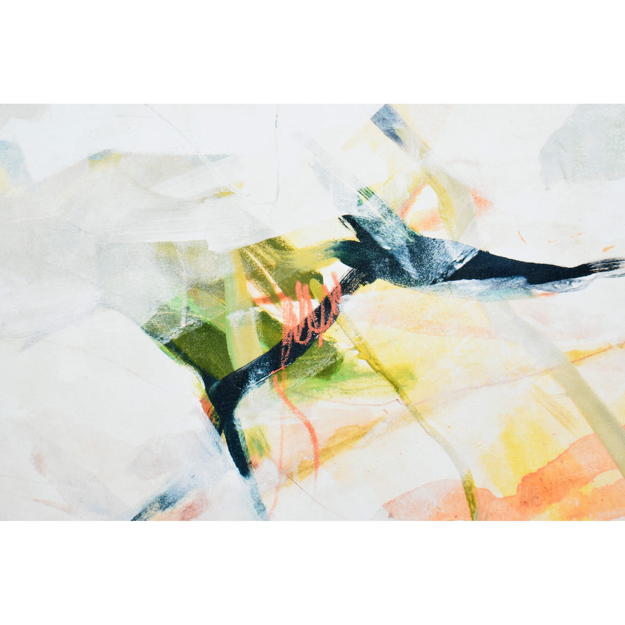 Green, blue, and pink brush strokes intertwine to create a playful, yet polished piece of printed art. Equally suited for the contemporary and mid-century modern interior, its colorful palette allows all other elements of the room to pop. Hanging horizontally or vertically, the champagne frame only enhances its versatility.