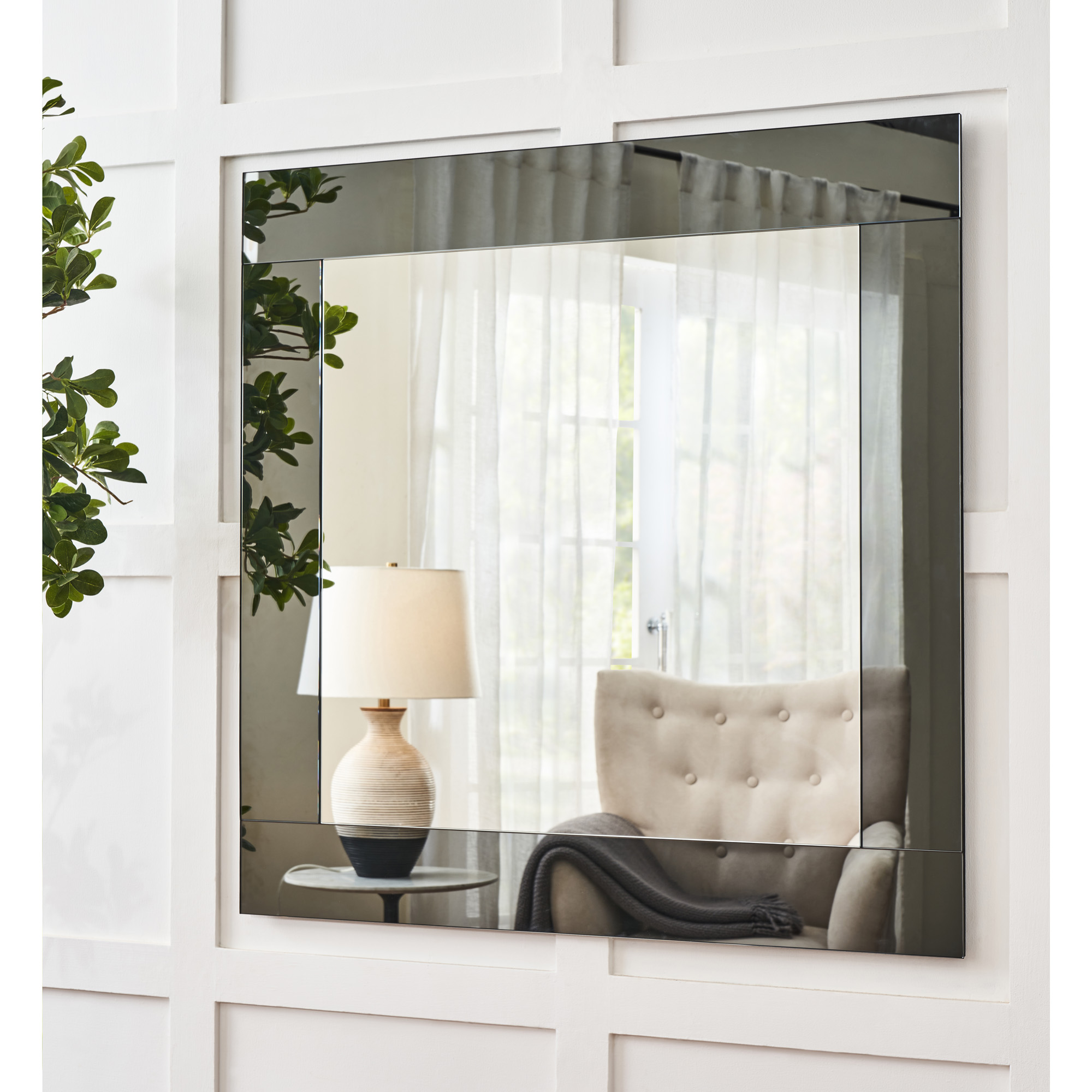 This mirror brings the subtle beauty of shadows and highlights into the modern home. Composed entirely of glass, this square design draws eyes in effortlessly. Thanks to seamless tinted gray glass along its frame, it has a peaceful quality that will carry through to the interior.