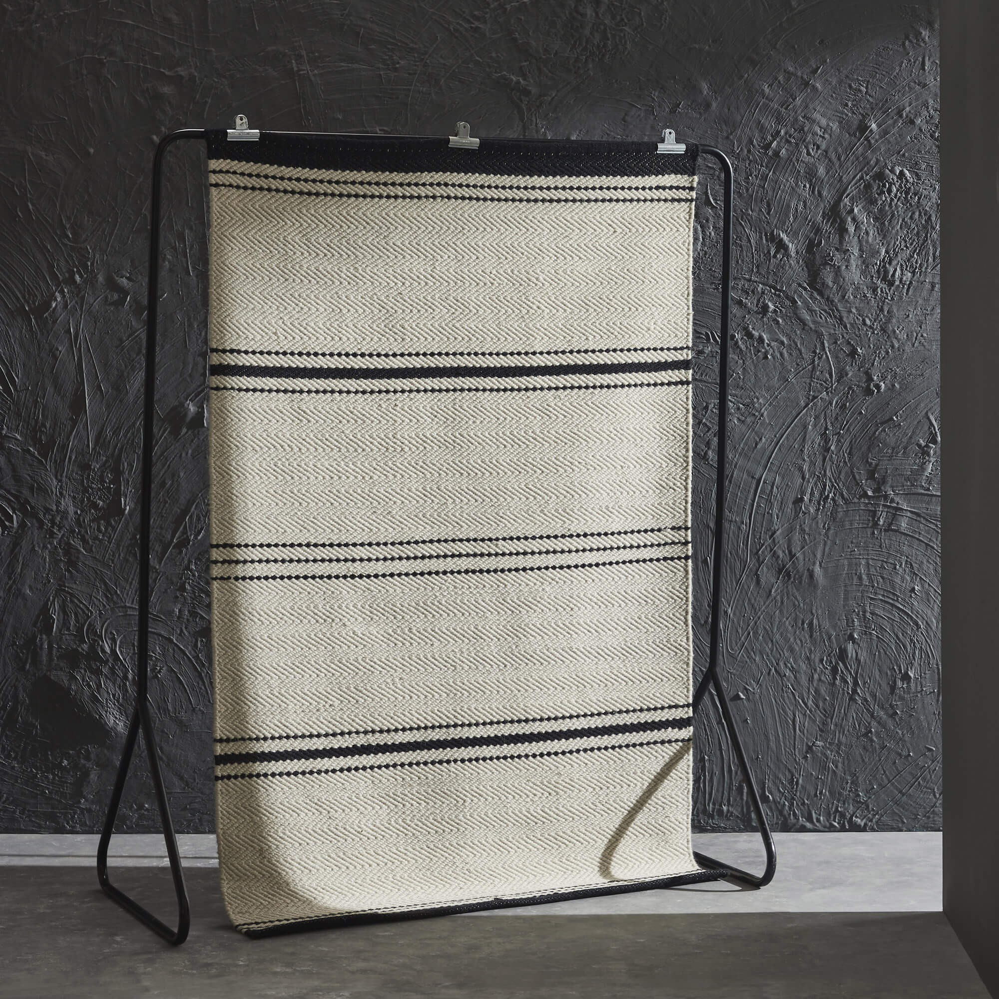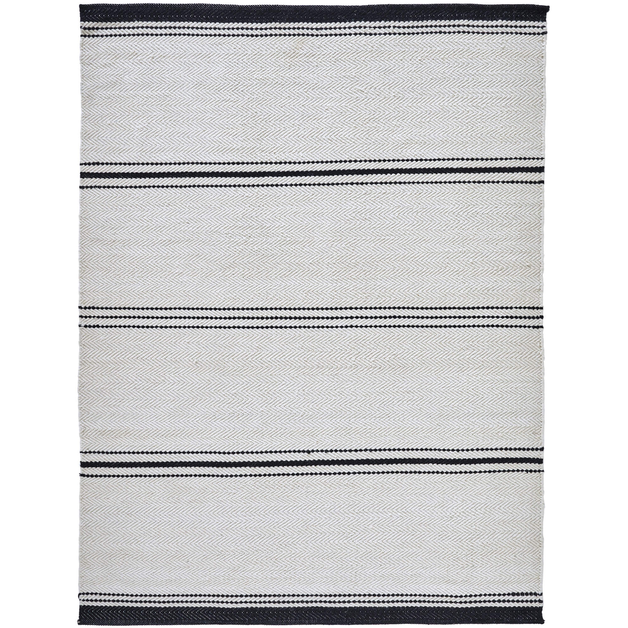 Stripe details exude an effortlessly chic quality from this area rug. Available in 12 different sizes, ranging from 3 x 4 foot to 9 x 12 feet, it has the capability to complete the design of the grand living space or cozy den alike. Handwoven and composed of 100 percent wool, this rug’s ivory and black coloring pairs perfectly with a classic and contemporary interior.