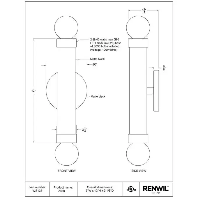 The Alika 12" Powder Coated Matte Black 2-Light Wall Sconce is the perfect lighting fixture to add a touch of elegance and modernity to any room. With its sleek design and durable construction, this sconce seamlessly connects with standard E26 sockets for easy installation. The robust iron wall canopy ensures a secure and stable fixture while supporting bulbs up to 40W, making it compatible with a wide range of lighting options. Its recommended LB033 bulb type provides a warm and inviting ambiance for any space. With hardwired installation, the Alika Wall Sconce offers reliable and integrated performance that will transform your room into a luxurious oasis.