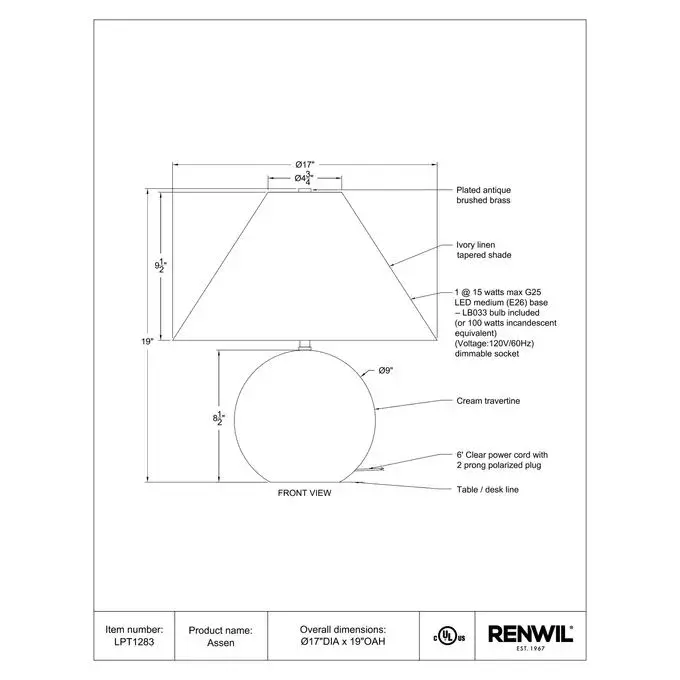 The Assen table lamp is set to become the fashionable sidekick your room update has been waiting for. Blending form and function, it features a stunning honed travertine base in tones of cream that complements many styles of interior. The perfect bedroom or living room table lamp, its generously sized tapered cream linen shade is held up by a champagne plated fitting that when combined with its included bulb, shed a warm glow throughout the room. Beautiful on its own or paired up for double duty, this dimmable lamp will make a timeless and memorable statement in any space.