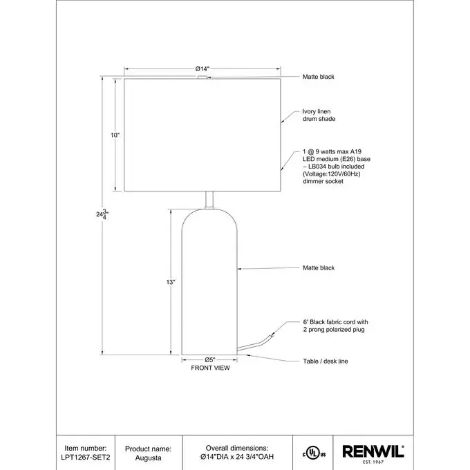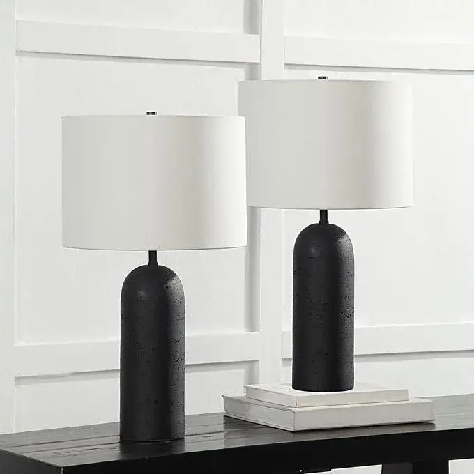 Upgrade your home decor with the sleek and stylish Augusta 25" Tall Black Resin Table Lamp. Its stunning black finish, paired with the off-white linen drum shade, creates a contemporary look that will elevate any space. This lamp conveniently connects with standard E26 sockets and supports bulbs up to 100W, ensuring compatibility with a wide range of lighting options. The equipped dimmer socket allows customizable lighting to set the mood for any occasion. This set of 2 lamps will provide a complete ensemble in any room, making the table lamp a must-have addition to your home.