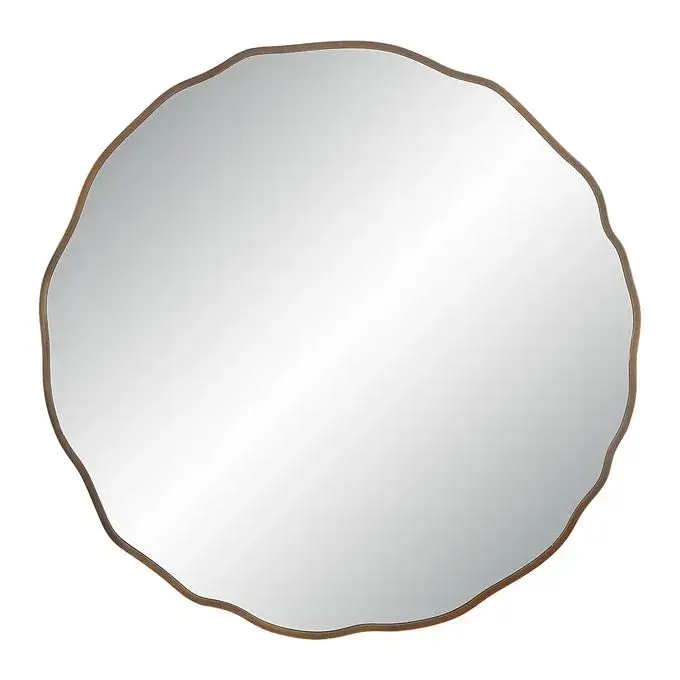 The Bern 40" Tall Round Irregular Mirror in Antique Brushed Brass is a stunning addition to any room. Its beautiful design incorporates an irregular shape and antique brushed brass finish for a vintage, yet modern aesthetic. The high-quality and durable cast iron frame ensure that it is built to last and can be passed down through generations. The abstract-shaped mirror adds intrigue and modern flair to any room, making it the perfect centerpiece. It also comes equipped with a D-Ring hanging system for easy installation and is also equipped for four-way hanging, providing versatile display options. Whether placed in a bedroom, dressing room, or foyer, the Bern 40" Tall Round Irregular Mirror is sure to impress.