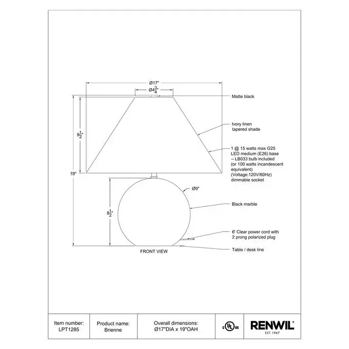 RENWIL BRIENNE LAMP LPT1285