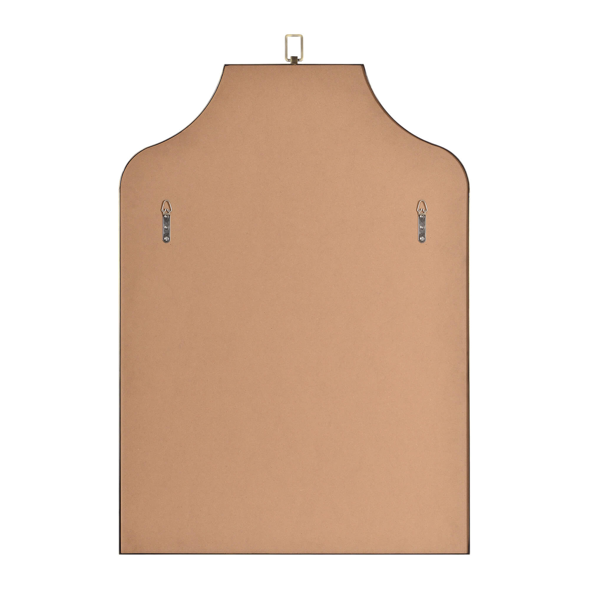 Routine reflection takes on an elevated, elegant appearance with this wallmount mirror design. Showcasing an antique brushed brass finished frame, this mirror has an inherent warmth that sets a welcoming tone for the interior it hangs within. The mirror's unique shape not only adds historical charm to its impression, but it brings complexity to the wall it hangs against.