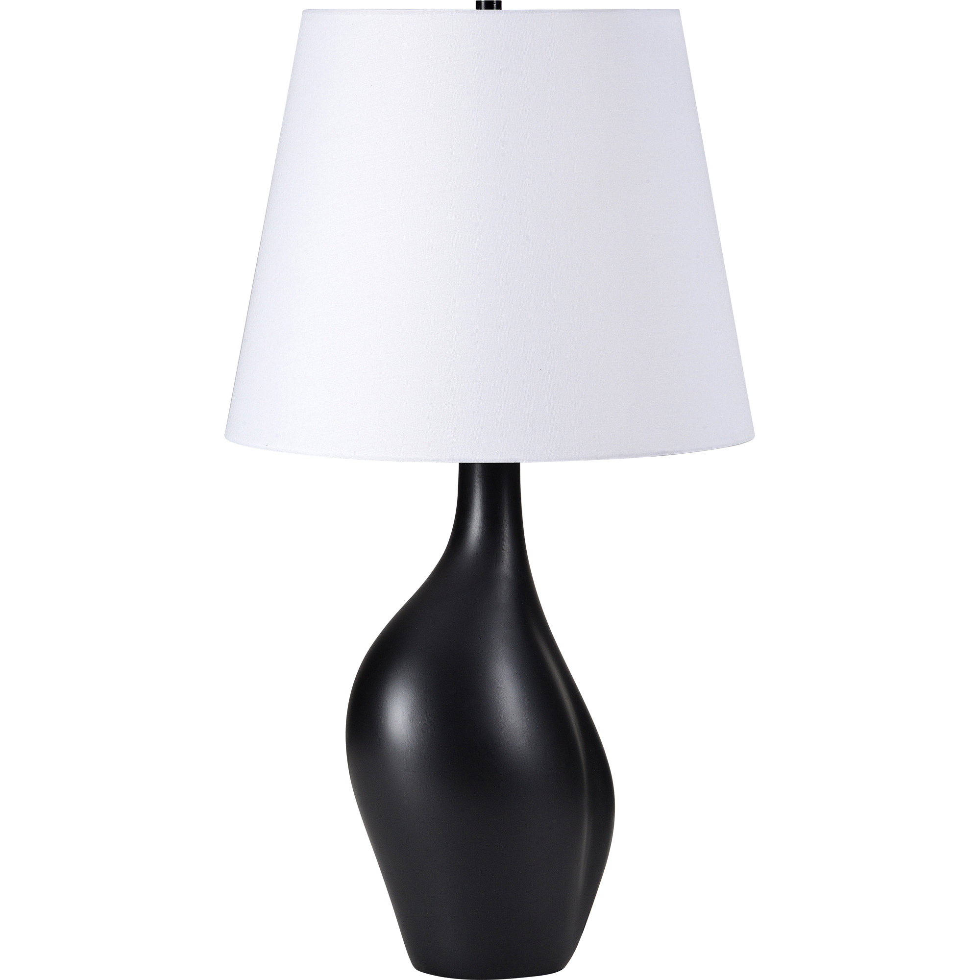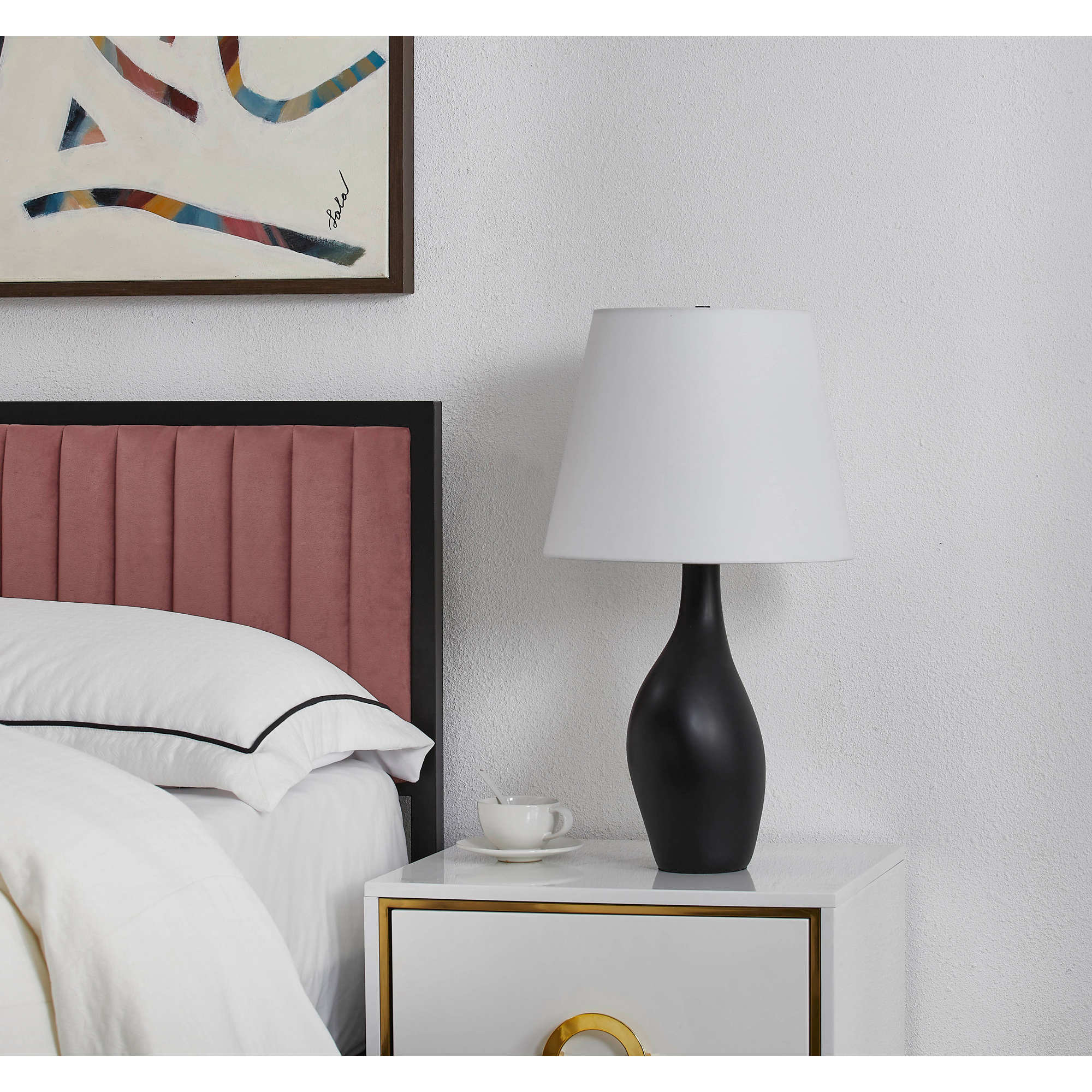 This table lamp proves that traditional and modern design elements can come together in harmony. It adds personality to the classic living room interior, while integrating freely with the decor elements in its midst. As the matte black resin base adds a bold, creative touch, the off-white linen tapered shade brings a soft formal feel.