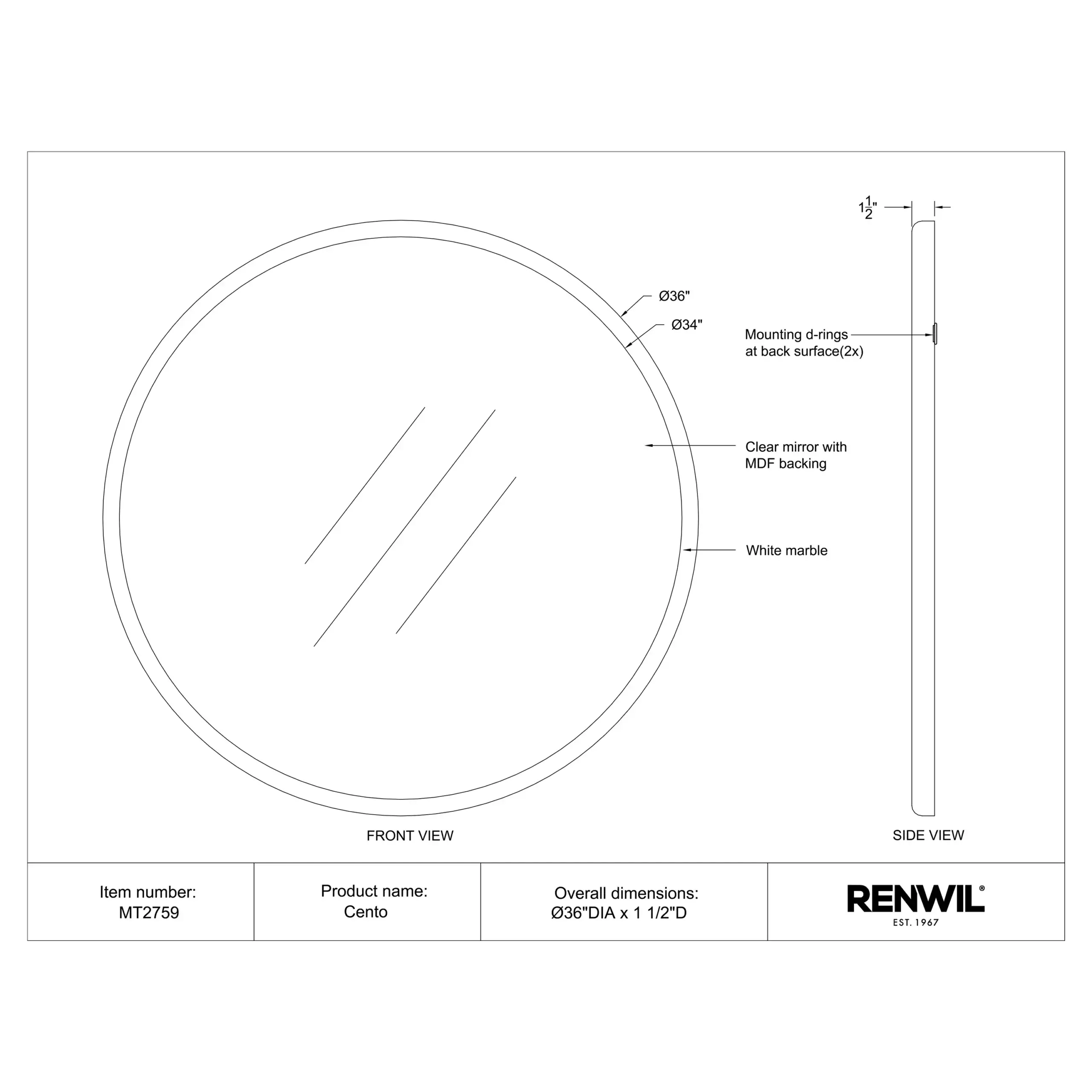 RENWIL CENTO MARBLE MIRROR MT2759