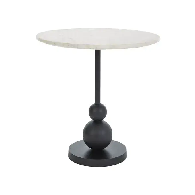 Table - Aluminum - Acacia wood - Matte black finish - Banswara marble - Natural white - KD - Marble pattern may vary