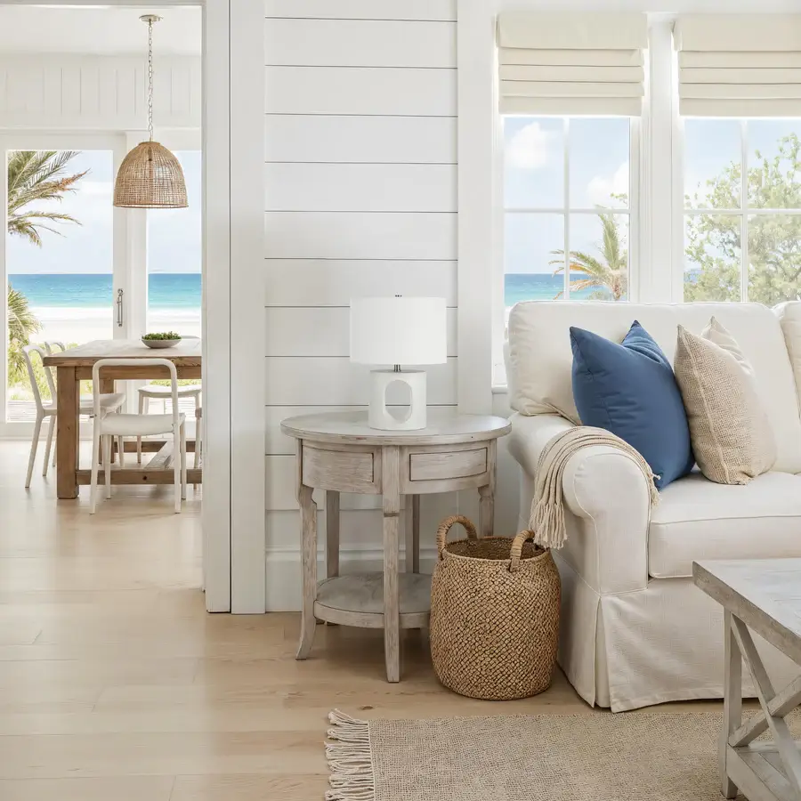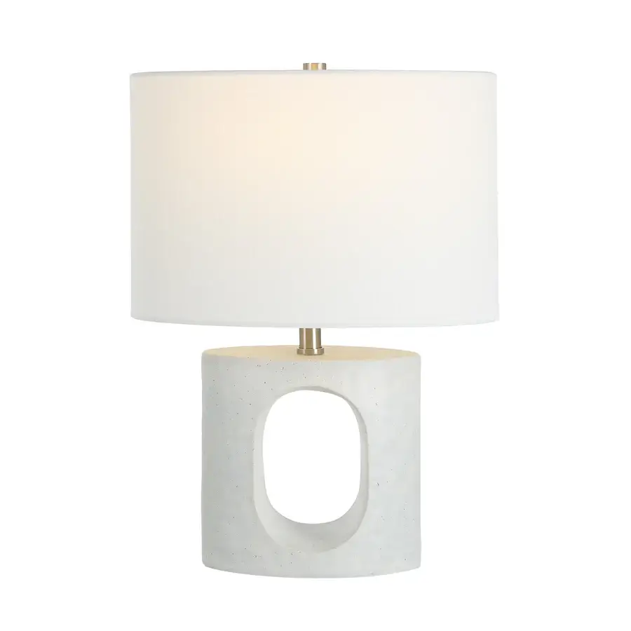 The Damian table lamp combines artistic form with subtle elegance. Its sculpted matte white base, accented with antique brass-plated accents, creates a refined yet eye-catching silhouette. Topped with an off-white linen drum shade, it casts a gentle, welcoming glow, making it a versatile addition that brings warmth, style, and a touch of modern sophistication to any living room or bedroom.