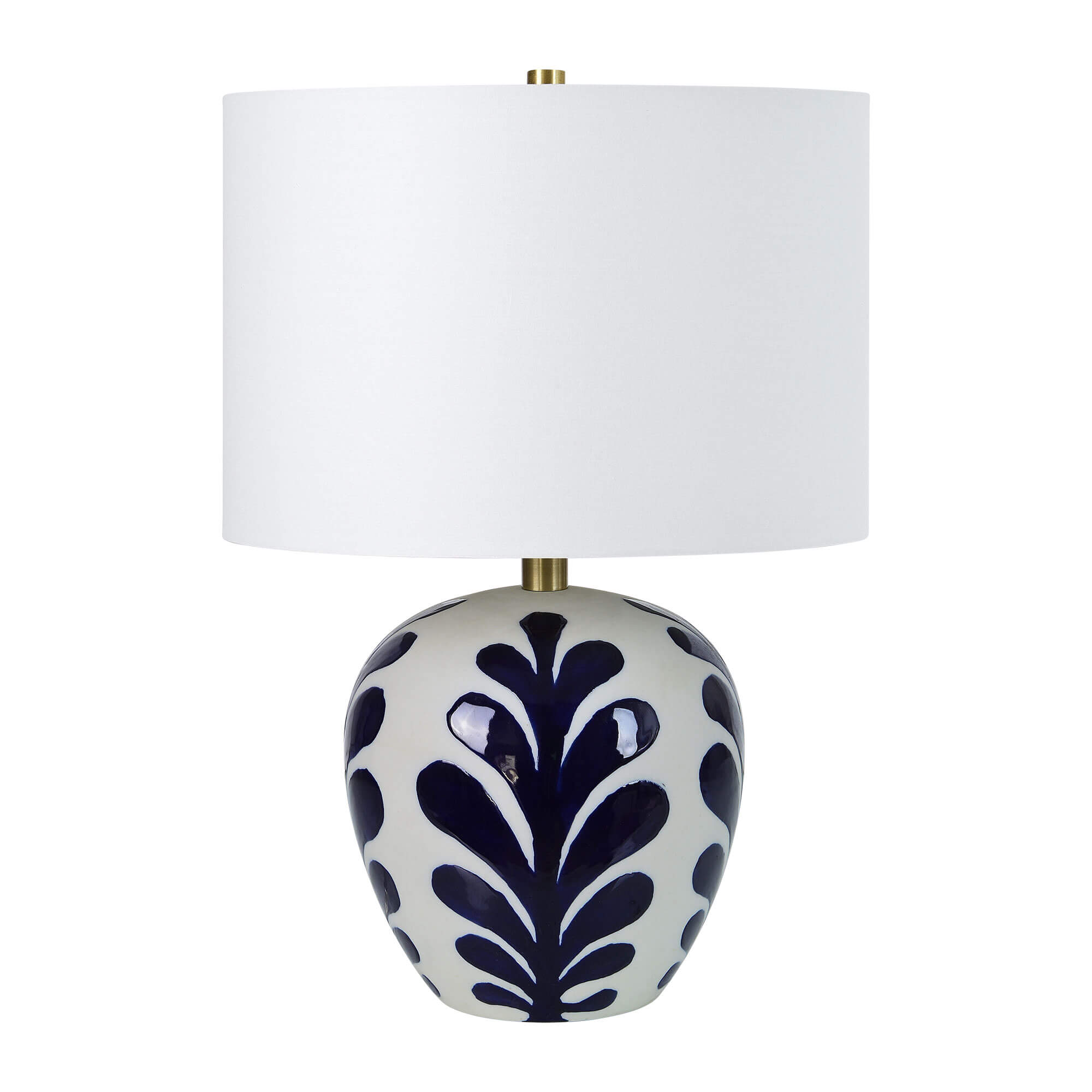 • Matte off-white with hand painted glazed navy finish