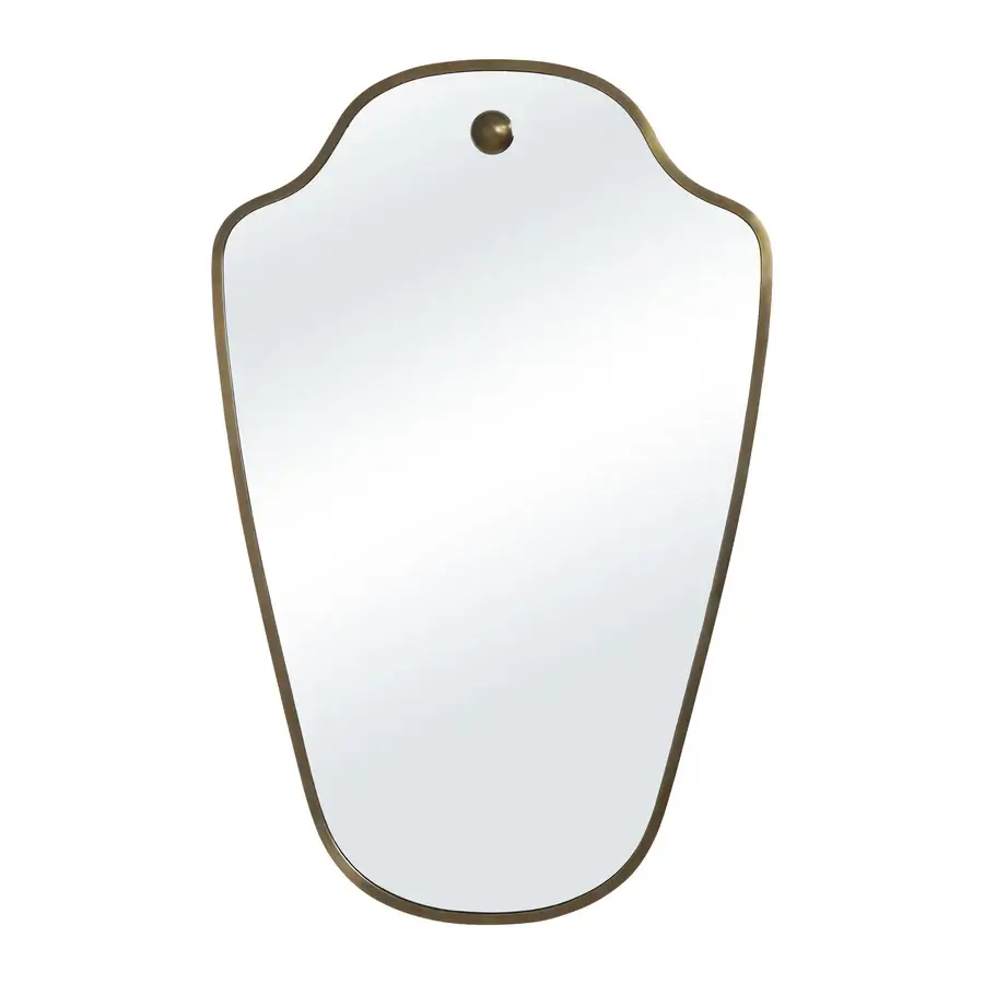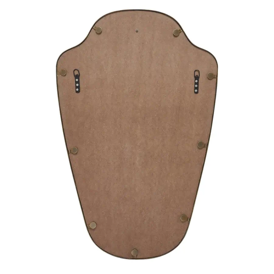 Introduce striking character to your space with the Elodie wall mirror, defined by its shield-like form and dark antique brushed brass finish. The iron frame’s rich, timeworn sheen adds depth and artistry, while the unique silhouette offers a sculptural focal point. Ideal for entryways, living spaces or bedrooms, this mirror infuses any interior with bold, refined style.