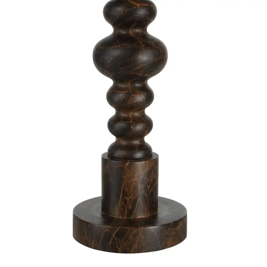 The Famar table lamp combines bold design with subtle elegance. Its black marble-effect base contrasts beautifully with a clean off-white linen shade, creating a striking focal point. A rotary dimmer lets you customize the light, while its sleek, contemporary lines bring texture and sophistication to modern or transitional interiors alike.