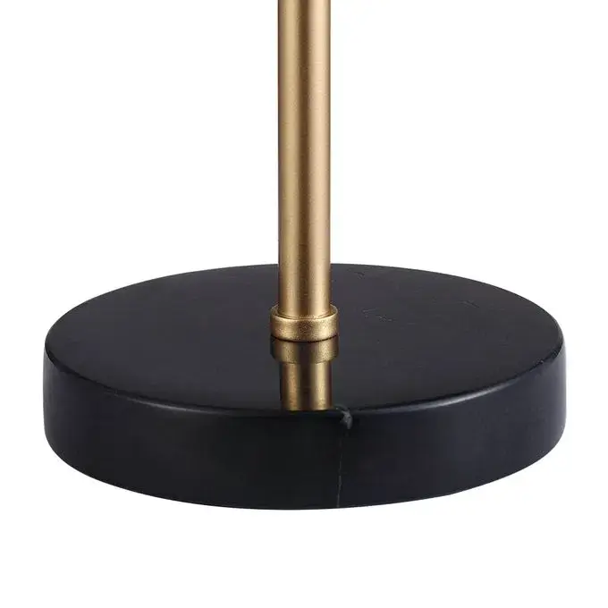 The home office takes on a designer quality when this table lamp comes into the room. Well-suited for an industrial or minimalist modern aesthetic, this piece is bold and eye-catching without requiring flashy details. The composition of iron and marble in black and gold is impossibly chic, pairing best with streamlined furnishings and decor.