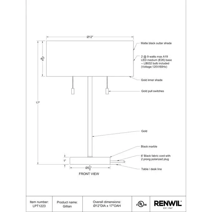 RENWIL GILLIAN LAMP LPT1223